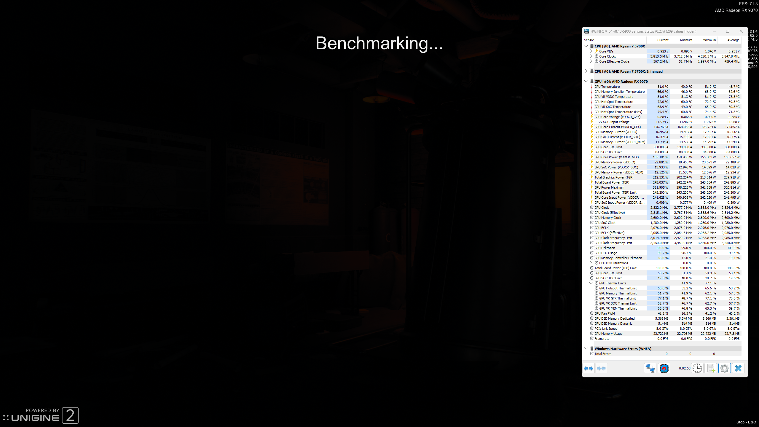Как решение-костыль, запускаешь бенчмарк и HWInfo с чекбоксом "always on top". Через 1-2 сек. после старта сбрасываешь сенсоры (и если нужно, alt-табом выводишь окно сенсоров на передний план), а в конце жмешь PrtScr. Потом вставляешь снимок в Paint 3D и смотришь четвертую колонку.