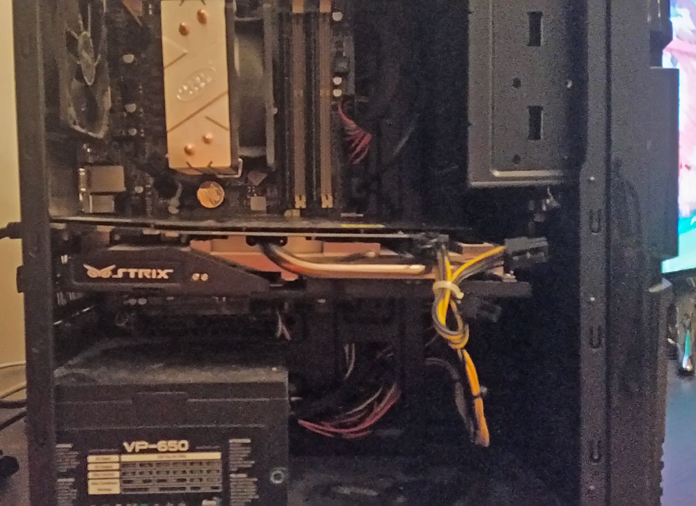 Всем привет! Обновил недавно видеокарту на Asus GTX 970. Когда установил как-то не обратил внимание, а вчера нужно было в системнике кое-что глянуть и заметил карта провисает. Правый ближний угол ламетно опустился. Прикручена двумя винтами хорошо. Не чревато ли это поломкой слота на материнке, ну и такое ощущение что сам пластик платы карты как-то чуть выгнут. Была мысль даже что-то подставить под угол этот карты (хоть деревянный или пластиковый) толбик какой-нибудь.