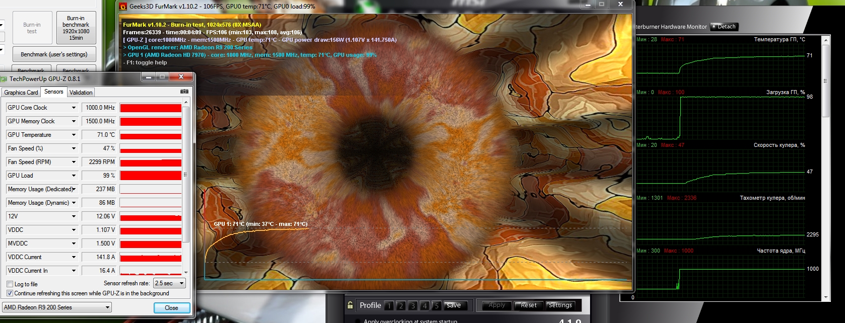 Всем привет, видеокарта MSI R9 280X gaming 3g, разгонял через мсиайафтербурнер до 1140/1640, проверял только на Heaven Benchmark 4.0, без проблем, но стоить выставить +5 к каждому значению как происходит либо выброс либо зависание, что посоветуете сделать для дальнейшего небольшого разгона? з.ы. с напрягами не баловался.
