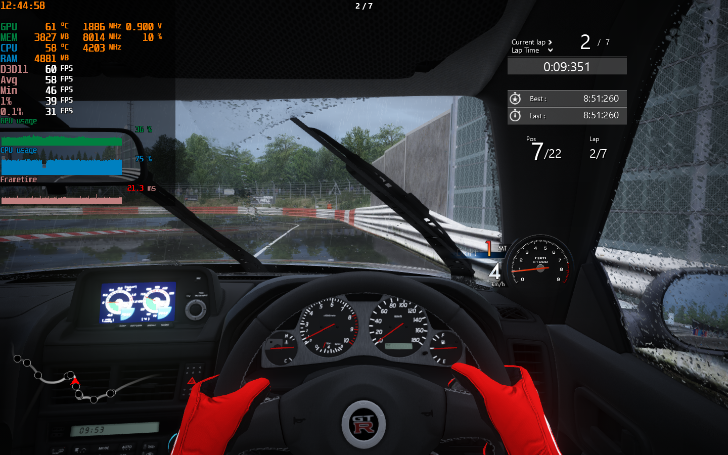 средний фпс за 10мин гонки в АС (круг нордшляйфе) упал на ~2фпс
