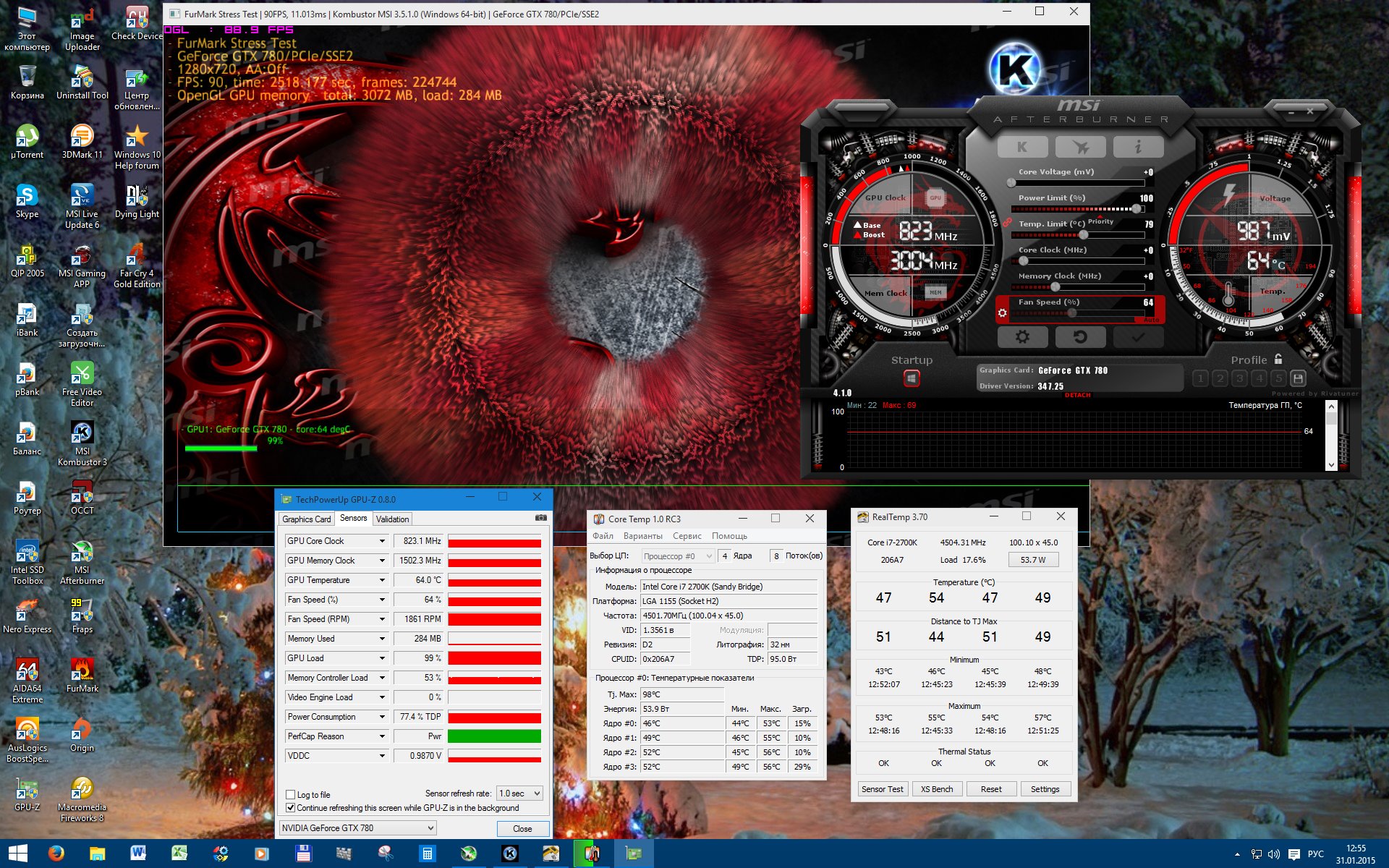 Странно то что в тяжелых тестах (FurMark, Kombustor)