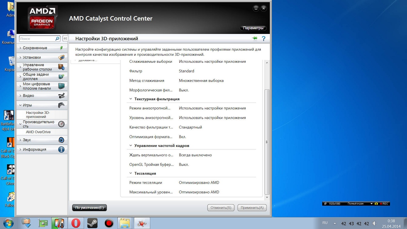 максимальную производительность не делай, специально для чистоты эксперимента, чтобы у всех настройки были одинаковые, сбрось настройки каталиста в НАСТРОЙКАХ 3D приложений: ПО ДЕФОЛТУ.