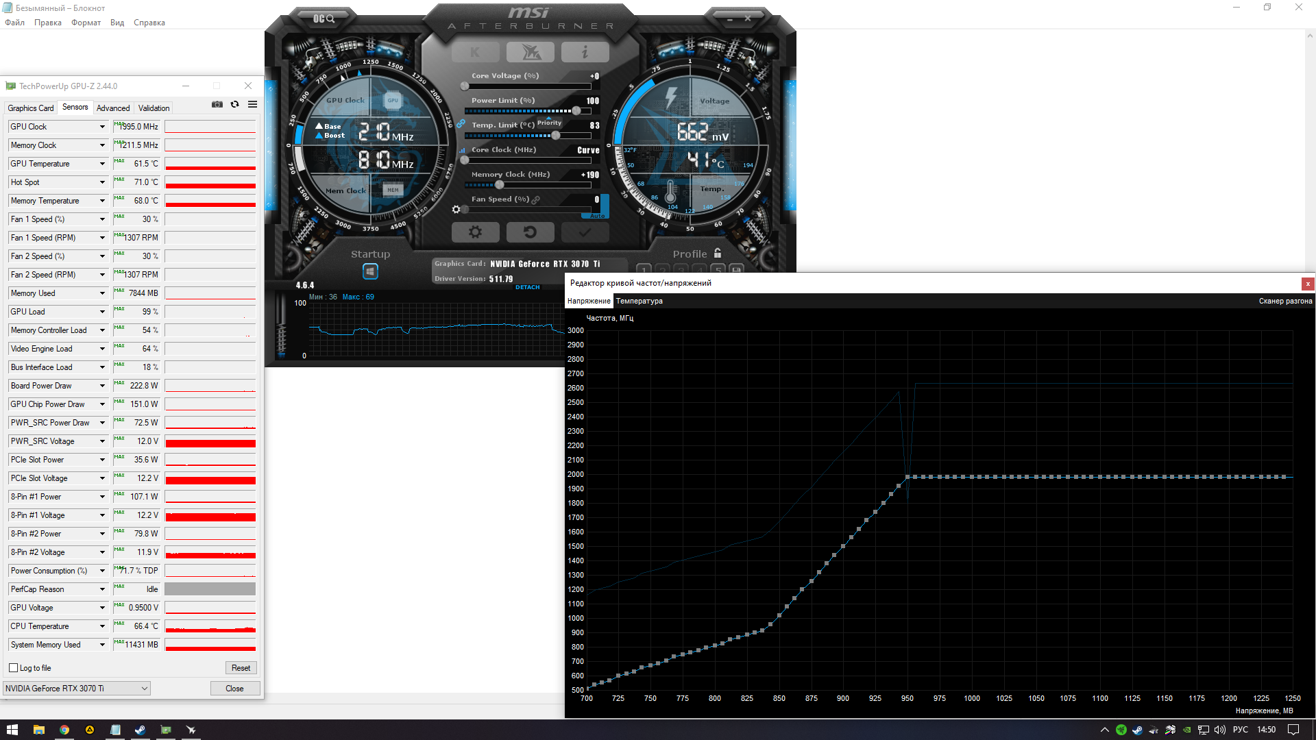 Привет были дела и до настройки видеокарты не было времени, в общем попробовал с RTX 3070ti Palit Gaming Rock: около 25 минут Cyberpunk 2077 все на макс DLSS на качество трассировка макс так же Superposition Benchmark 1080 Extreme.