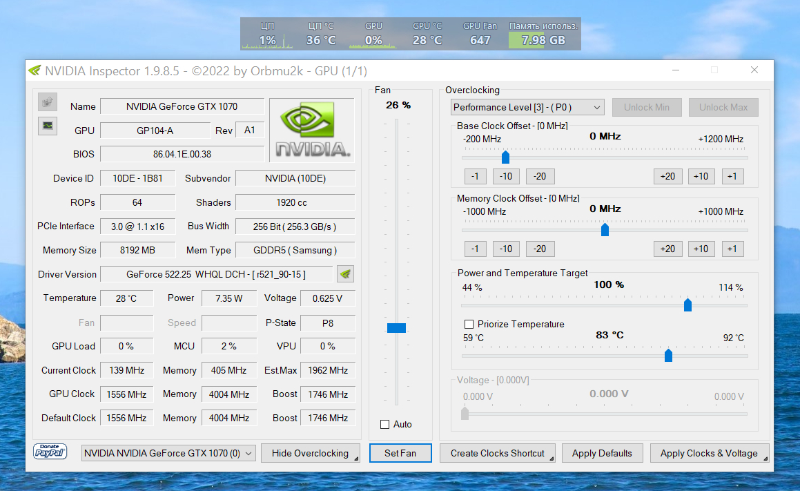 Доброго времени суток. Сможете подсказать что с видяхой ? Если что это Inno3D GeForce GTX 1070 Ti iChill X3 Review В систему с ней комп не грузится долгое время, стоит минут 5 потом идёт в систему но без изображения. Я сделал так: подкинул её во второй слот, загрузился с рабочей. Поставил драйвер .... но как-то не правильно всё показывает. Подозреваю что памяти хана