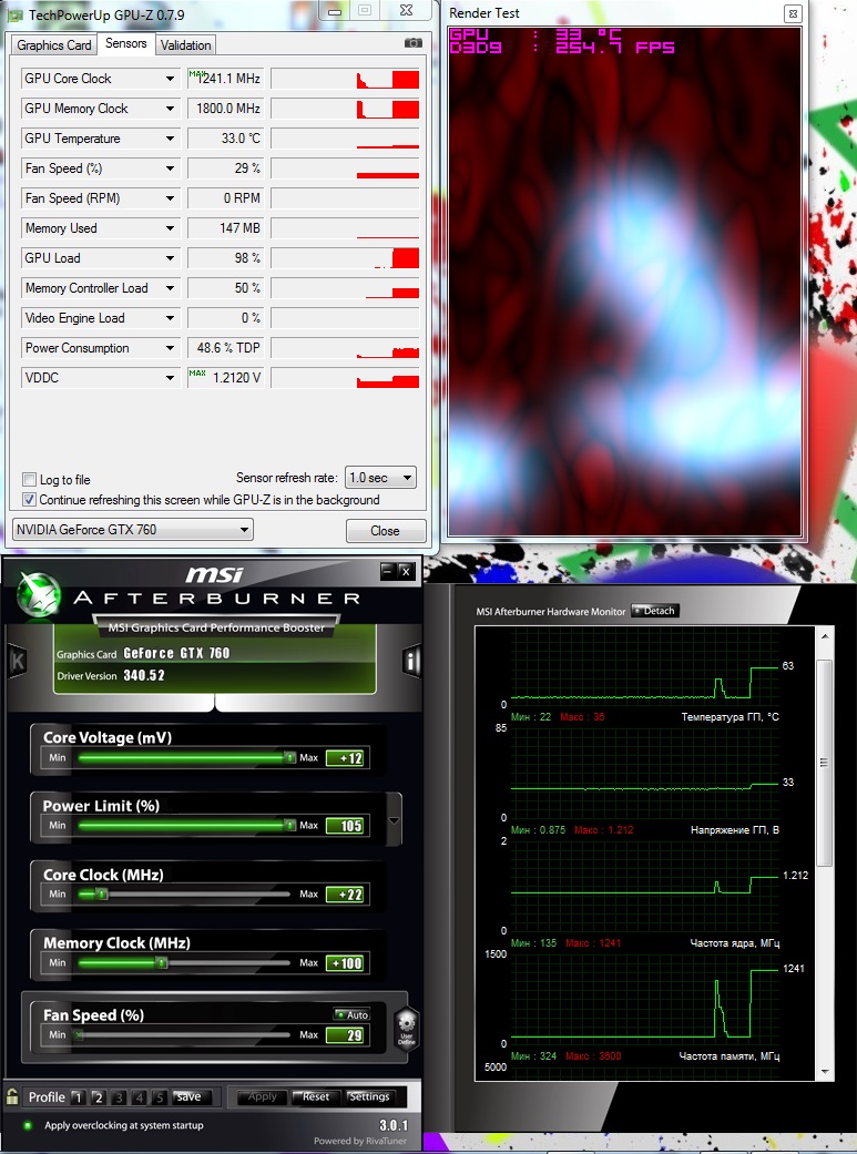 Информация от участника темы: olegdjus Решил и я свою лепту внести в разгон Maxwell (750ti/950/960970/980/980ti/TitanX) с рассмотрением ключевые параметры. Так как я не сторонник отключения Boost - то будем с ним. Но начнем с подготовки. а) Шьем крайний стоковый BIOS для Вашей карты. б) Качаем msi afterburner и gpu-z и устанавливаем их. в) Тут три варианта. 1)Если не желаем поднять напряжение - пропускаем пункт в. 2) Если желаем поднять на шаг или два (на разных карта даже одного производителя шаг напруги может быть разный, так что всё индивидуально) - прибавляем в ab по 10мВ к напряжению (остальные вкладки не трогаем) и во вкладке датчиков gpu-z(Sensors) смотрим нагрузку под встроенным рендером(нажать вопрос в первой вкладке gpu-z рядом с Bus Interface и нажать Start Render. Нас интересуют в датчиках показания GPU core clock и VDDC. Выбираем подходящий вариант и идем дальше. 3) Если желаем понизить напряжение - объясню во вкладке напряжений, чтобы не повторяться. Далее скачиваем архив с программами для редактирования и прошивки BIOS. Открываем с помощью MaxwellBiosTweaker свой BIOS и начинаем редактировать.
