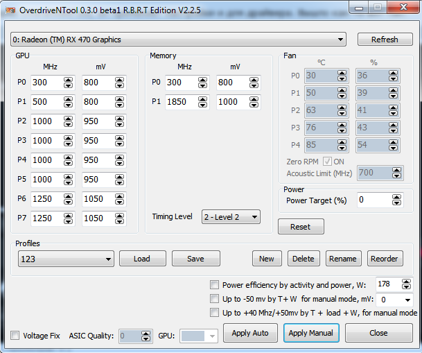 Q: По мониторингу напряжение на GPU немного отличается от установленного. A: Реально напряжение выставляется кратно 6.25 и округляется в большую сторону. То есть, если Вы выставили 1137, то реально у Вас будет 1137.5, а если выставили 1138, то уже реально будет 1143.75 мВ.