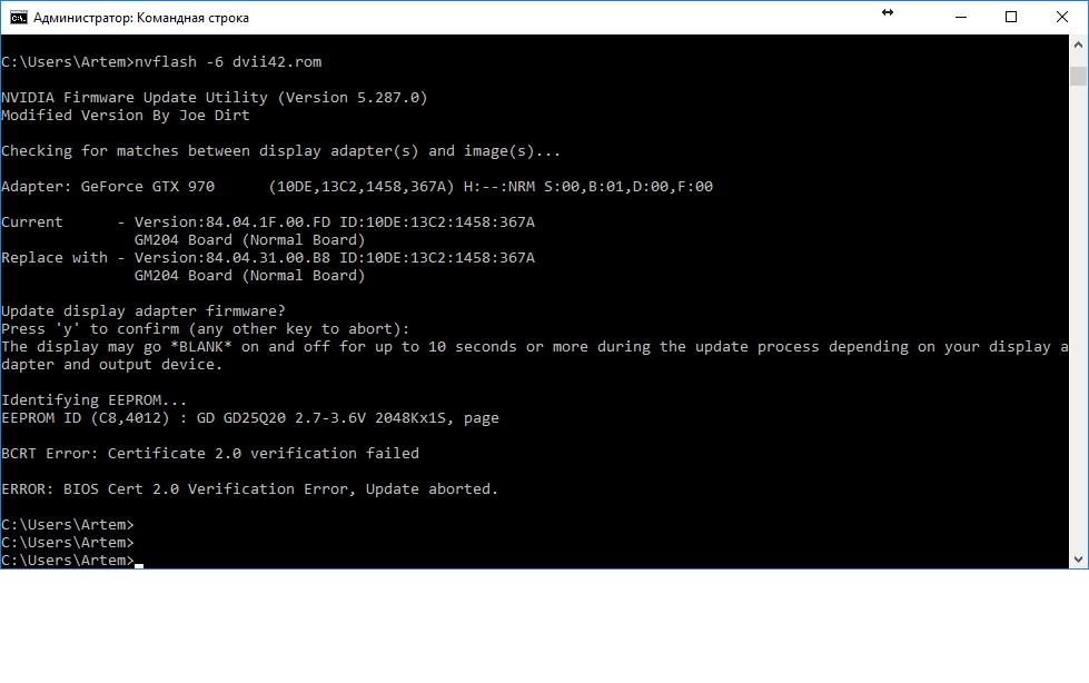 3 кабеля перепробовал всё равно ничего не показывает, также при вводе команды nvflash -a (ну или list) пишет, что типа вк от нвиды не обнаружена. пробовал и на dvi i, и через удалёнку на телефоне вводил команду на dvi d одно и тоже пишет. грешу на кабель, так как он не dual link(по центру контактов нету)
