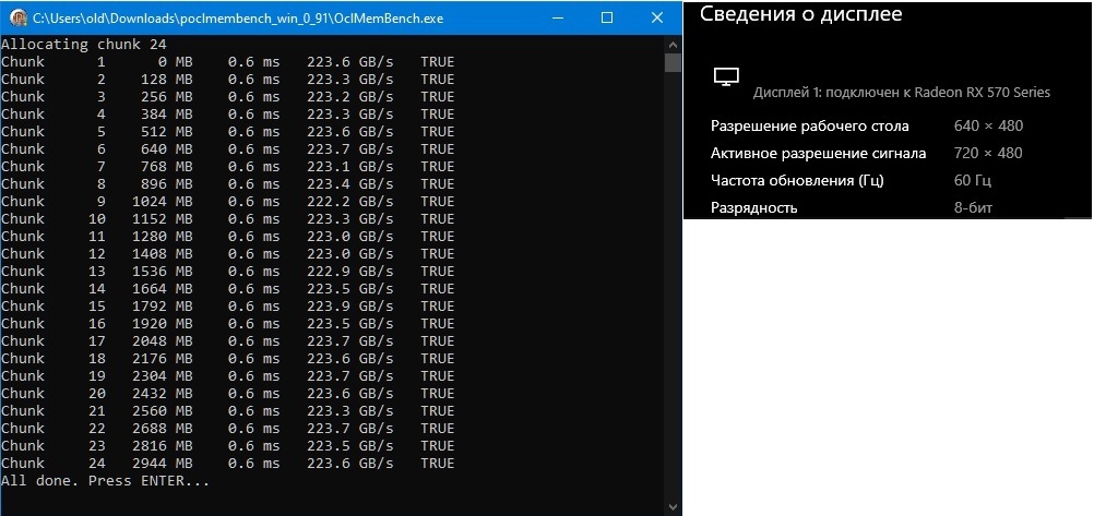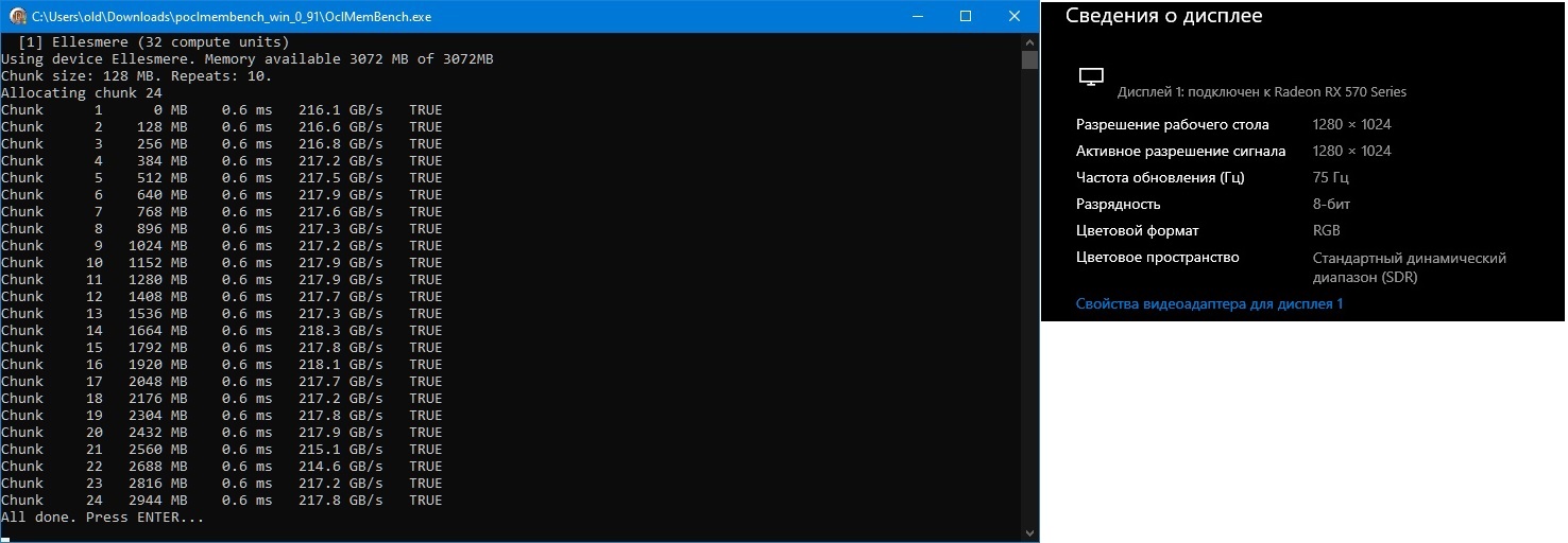 Действительно, есть влияние разрешения и герцовки. Довольно сильное. С параметром ref 50 _1280х1024"60Гц (1284/1900 ~219-220gb/s) //мой режим "по умолчанию" а если так: