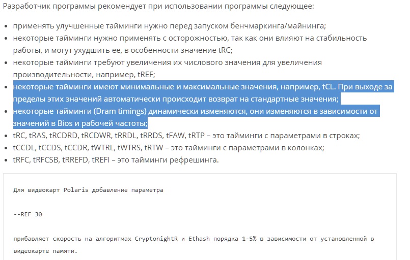Я, эт самое, по опыту кручения tREF из под HiveOS выставил вместо 30 у себя 255 и получил вместо 229-230 Гб\сек уже 231-232 Гб\сек А так-то по дефолту tREF стоит всего 5...