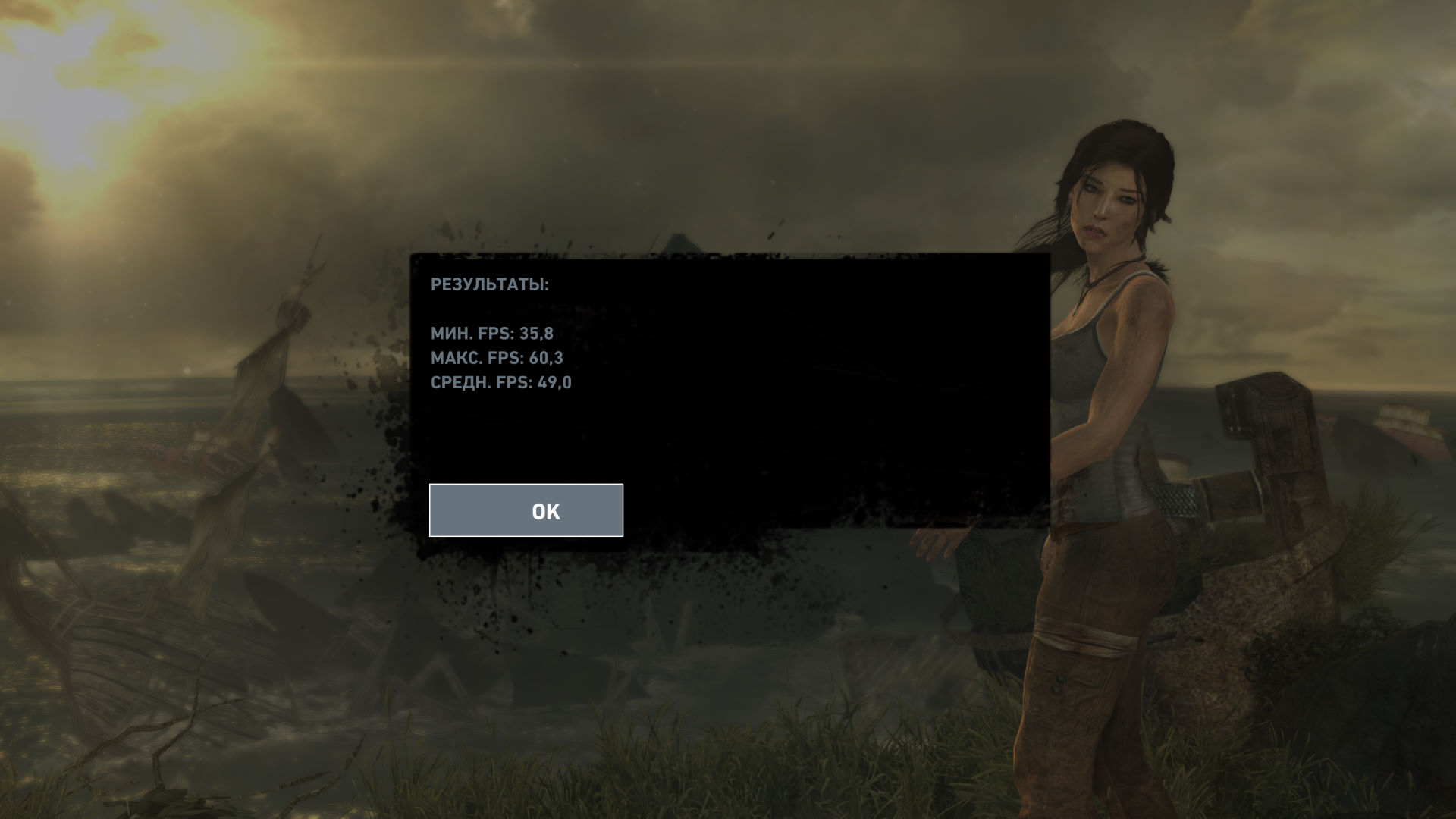 Так это ж не Метро, это Ларка . На Ларе всё возможное на макс - стабильно 24к/с, проц и видеопроц загружены на 30-40%. Убрал вертикальную синхронизацию - проц - 70-80%, видеопроц - 100%, фпс - 50-60к/с без просадок, но видны мелкие разрывы изображения. Только картинка не на весь экран, чёрные поля по краям 1.5 см.