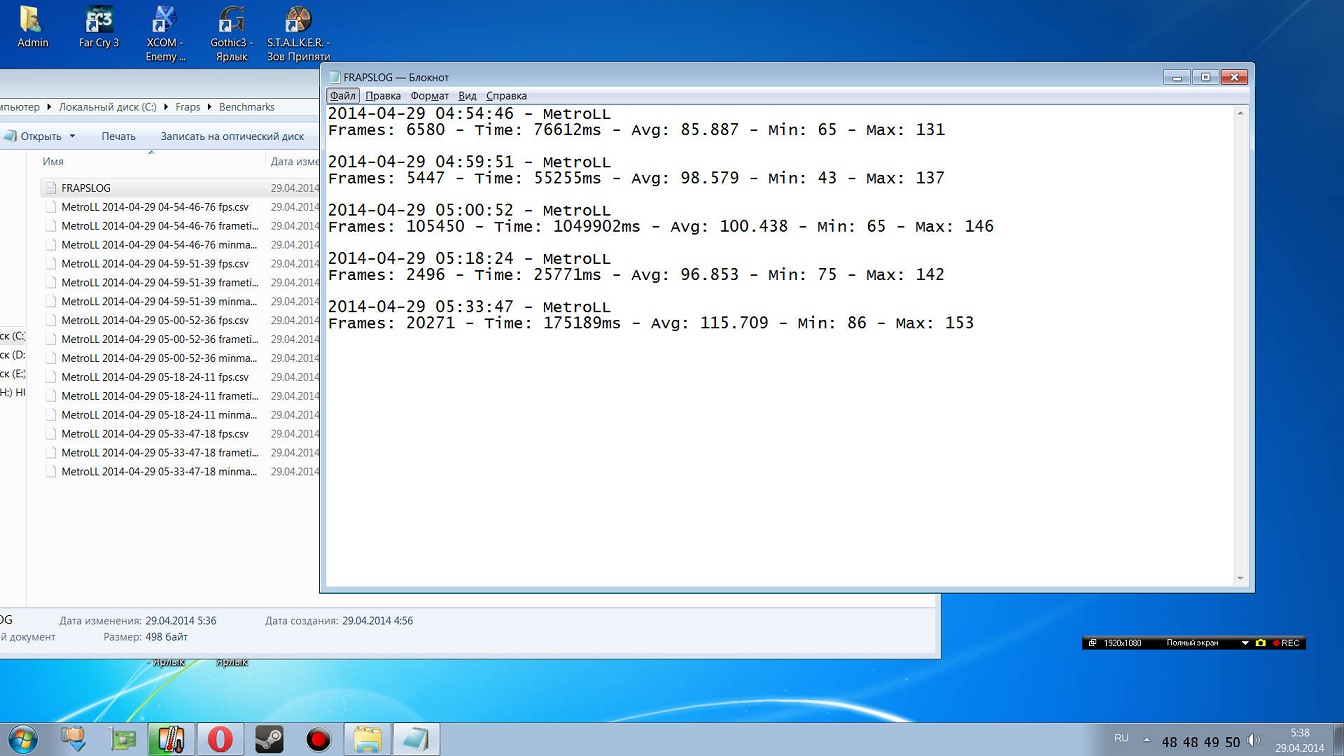 Вот смотри лог-файл фрапса (скин) обрати внимание - была только одна хорошая просадка, до 43фпс меня там как раз вальнули и я грузил контрольную точку. все остальное время больше чем частота экрана(60фпс)