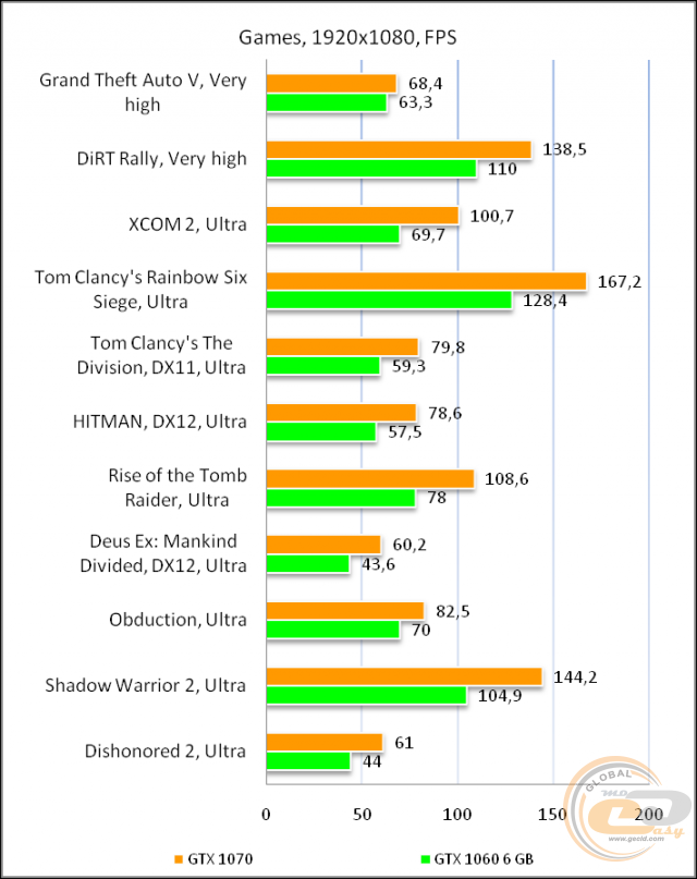 Сейчас бы приводить в пример 1063 против 1070ти, когда мы говорили о 1066 и 1070 без ти, у нее 1920 шейдеров, а не 2432, и по тестам в играх, а не синтетическим, разница примерно в 30% и есть, где-то даже сильно меньше, тут уж от игры сильно зависит.