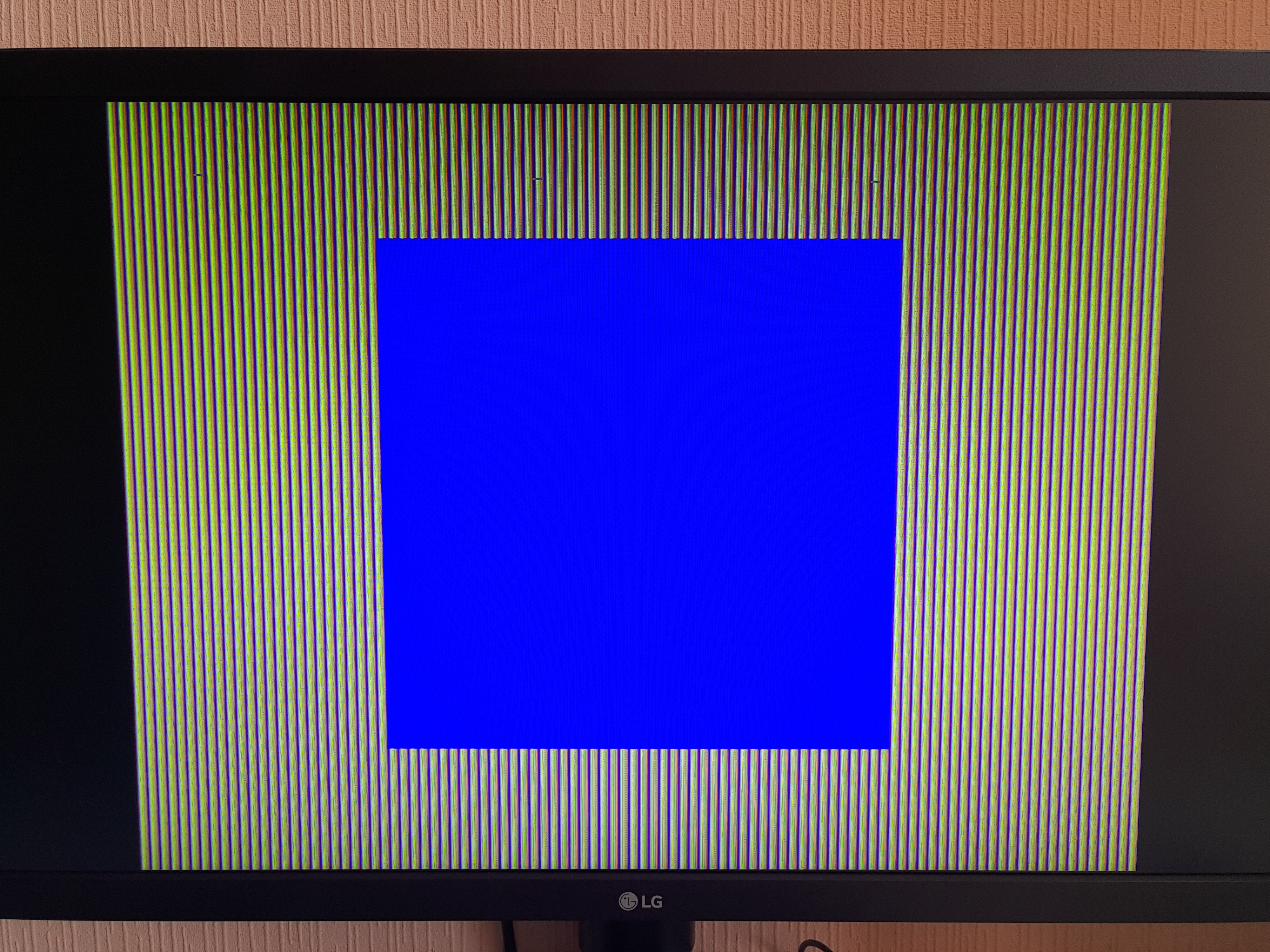 Хах, я думал только у меня такая фигня, один в один как ты описал)) Тоже офигел, когда увидел этот синий квадрат и какие-то полоски, карту б/у брал, думал с ней что-то не так. Подумал, что это как-то связано с инициализацией карты, попробовал включить CSM и он пропал, так и оставил включенным.