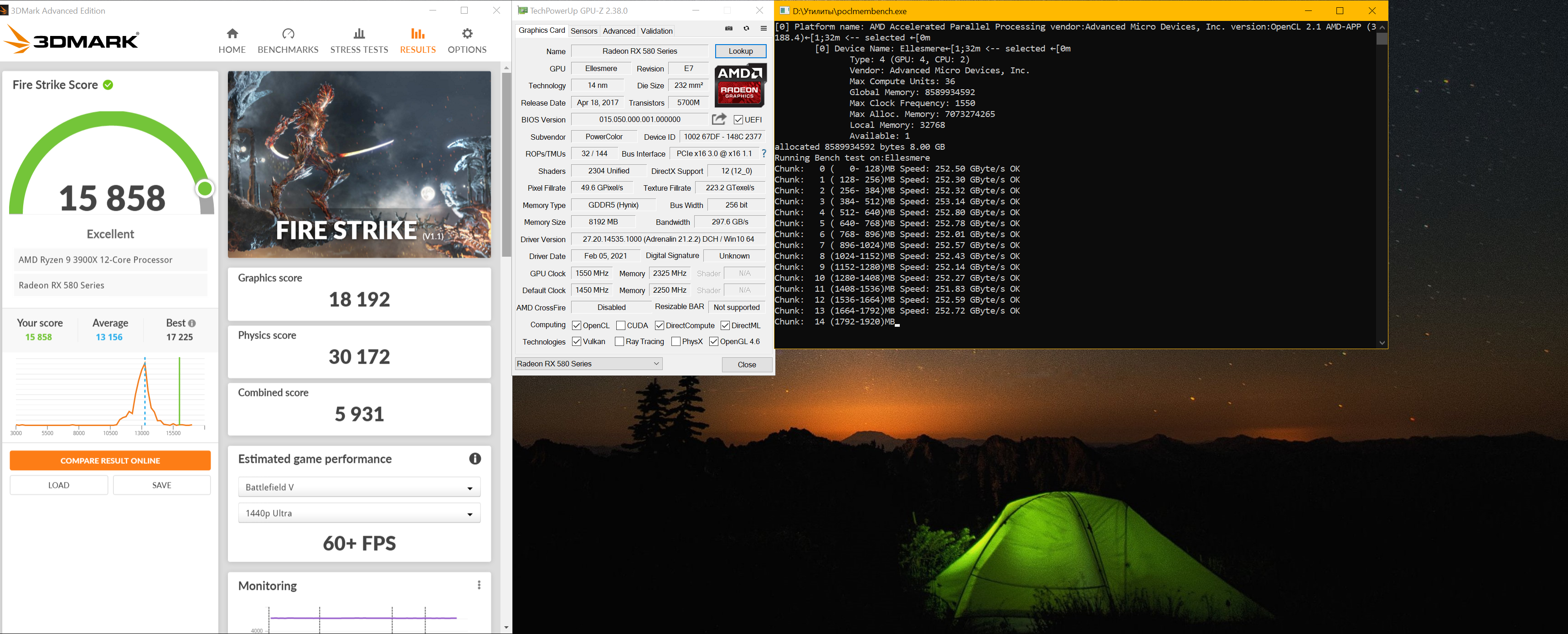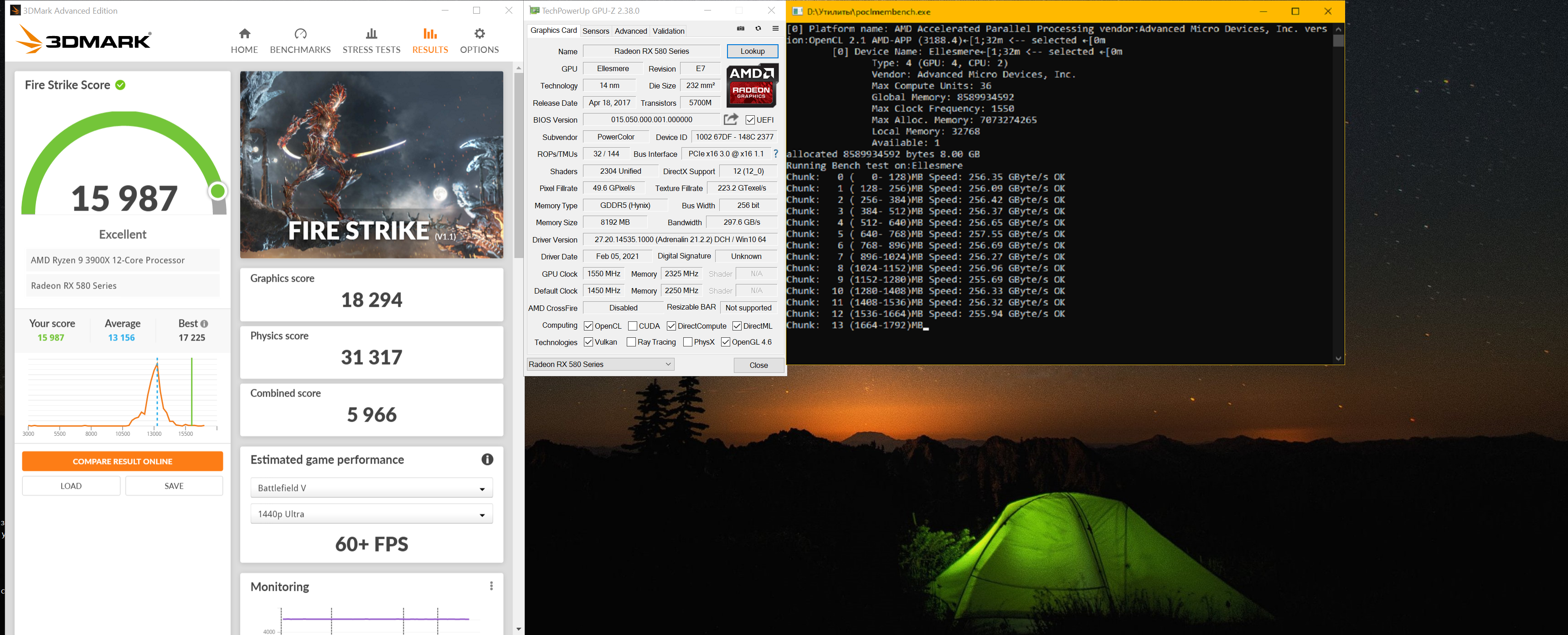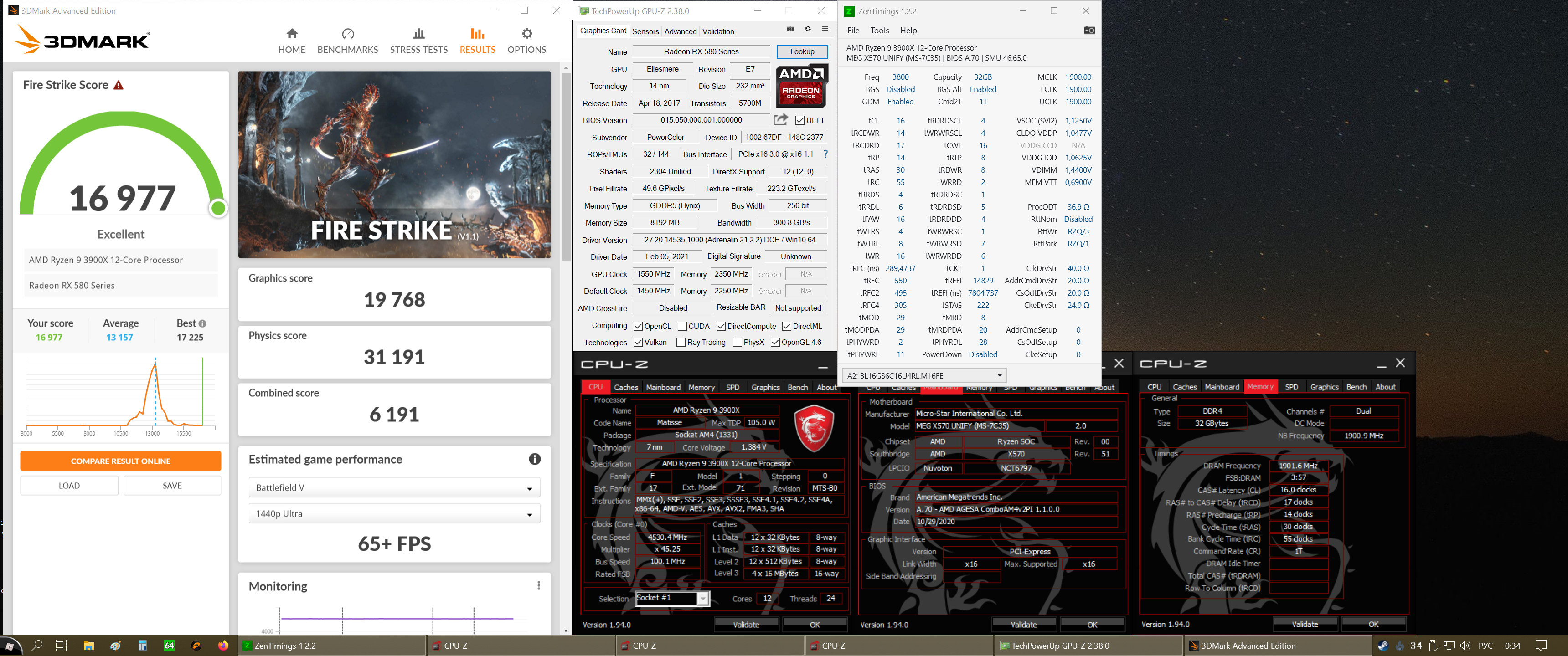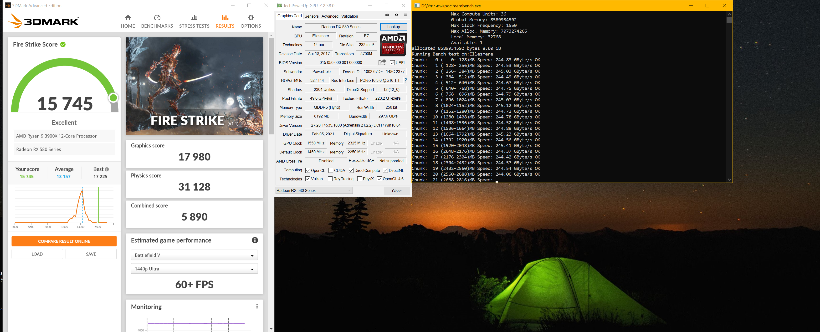 Добавлено спустя 22 минуты 19 секунд: И вот один из таких перетестов - удивительно, но тест пройден на частоте памяти 2350 МГц без артефактов Чудовищный для Полярисов на воздушном охлаждении Graphics Score в 19768 попугаев!