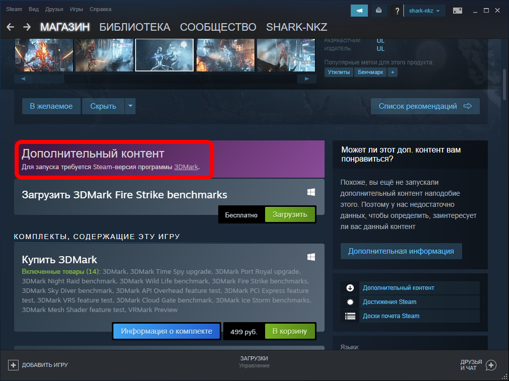 Shark-Nkz Так качай не полную, а демо-версию. Идёшь в основную секцию 3DMark, не очень заметная кнопка справа. https://ibb.co/gDyY1Rw И вообще он регулярно распродаётся по 1$