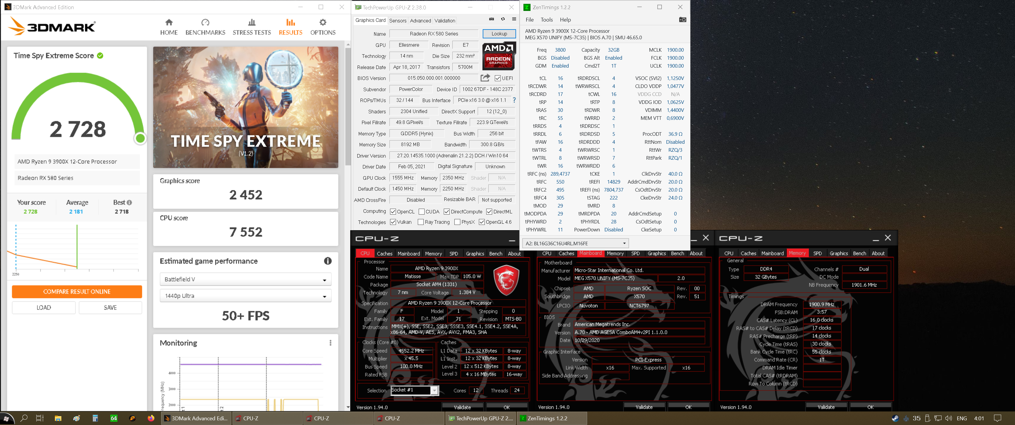В общем, путём хитрости с разрешением (правилами ведь не запрещено ), поднятием tREF, прошивкой биоса с увеличенными лимитами на частоты и напряжения, разгона карты до 1555\2350 МГц (на 1560 МГц уже драйвер крашился) и накидывания дополнительных 25 МГц на первый и второй CCX процессора, удалось чудом обойти на стоковом воздушном охлаждении чувака с картой на частотах 1770\2250 МГц с охлаждением сухим льдом в тандеме с 9900KS на 5.2 ГГц под водянкой и занять 1-ое место в дисциплине 3DMark Time Spy Extreme
