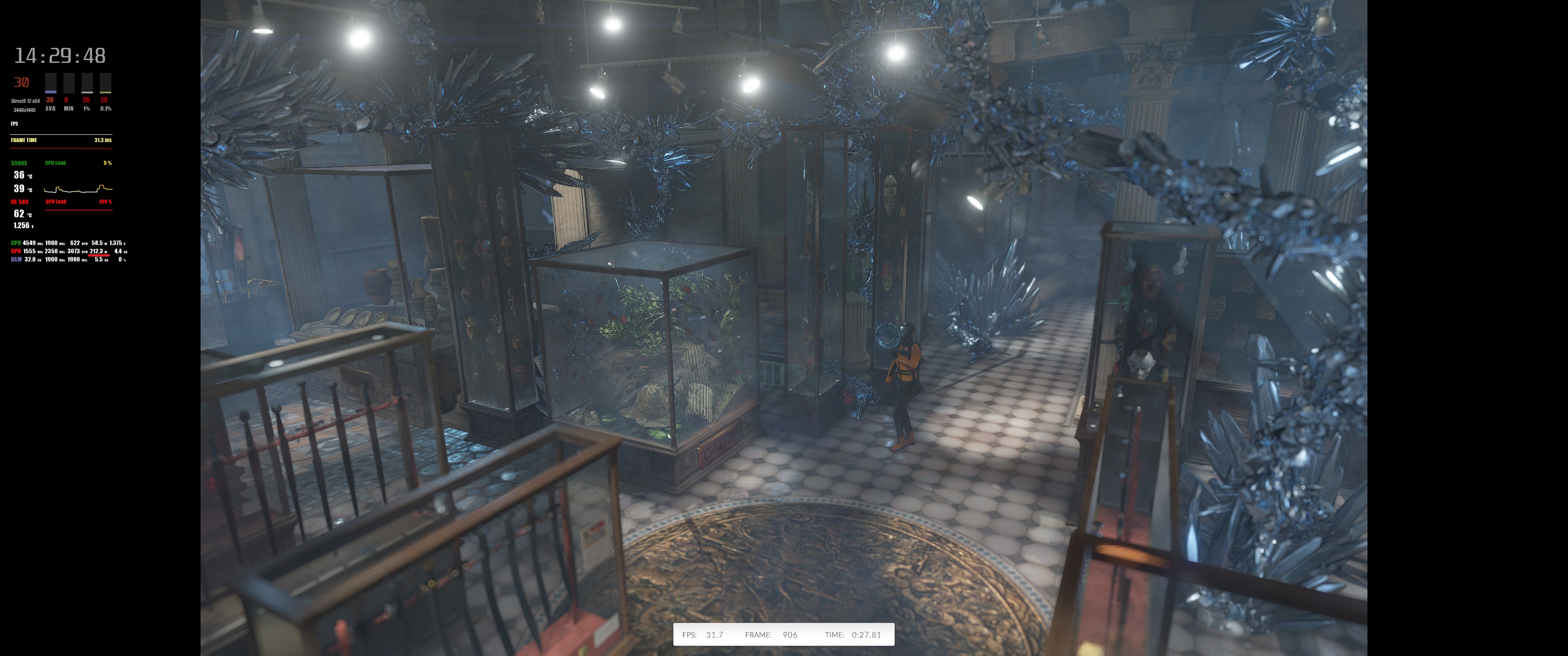 1550\2325, 3440х1440, кастомные тайминги, tREF = 255, 1.256 В под нагрузкой, TDP 200 Вт и PL +50% = 300 Вт, вентили на максимум, температура 66 градусов, ПСП 244-245 Гб\сек