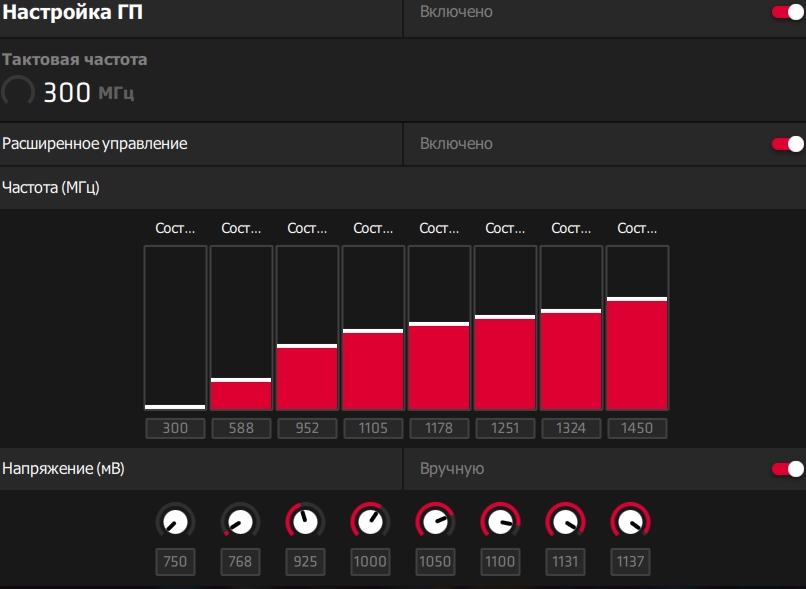 Q: По мониторингу напряжение на GPU немного отличается от установленного. A: Реально напряжение выставляется кратно 6.25 и округляется в большую сторону. То есть, если Вы выставили 1137, то реально у Вас будет 1137.5, а если выставили 1138, то уже реально будет 1143.75 мВ.
