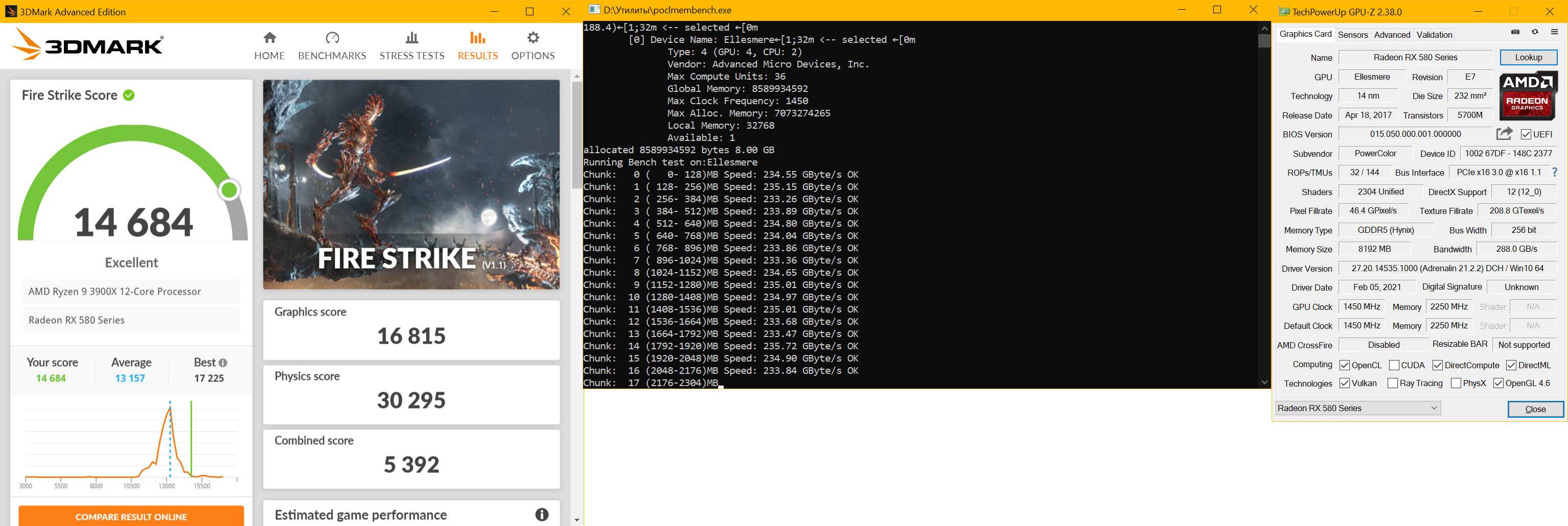 Хз, мб мне надо было принудительную анизотропку х16 в дровах убрать... Или комп перед тестом рестартануть. Плюс tREF я подгонял под ПСП Фени, а так у меня ~237 Гб\сек в 1920х1080, если память не изменяет. Вот вроде нормальный прогон на 1500 МГц был, а эти два я по-быстрому сделал, без заморочек (не вырубая фоновые процессы и прочее). Я этих прогонов уже столько наклепал, что чёрт ногу сломит. https://www.3dmark.com/fs/25141839