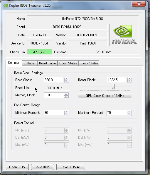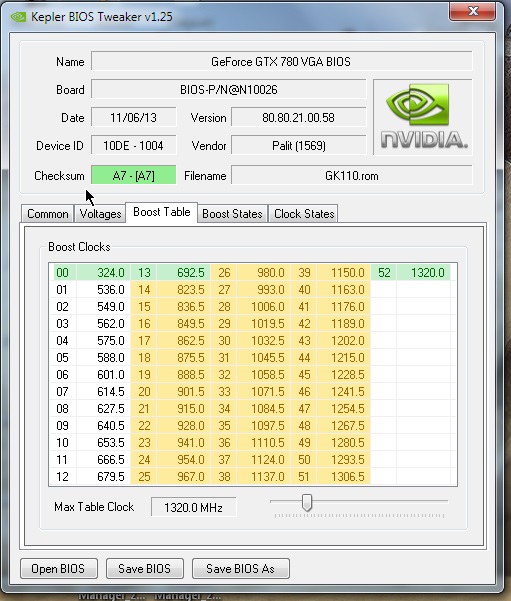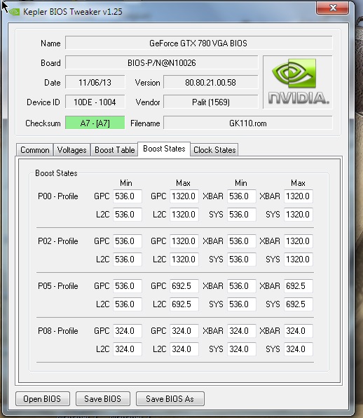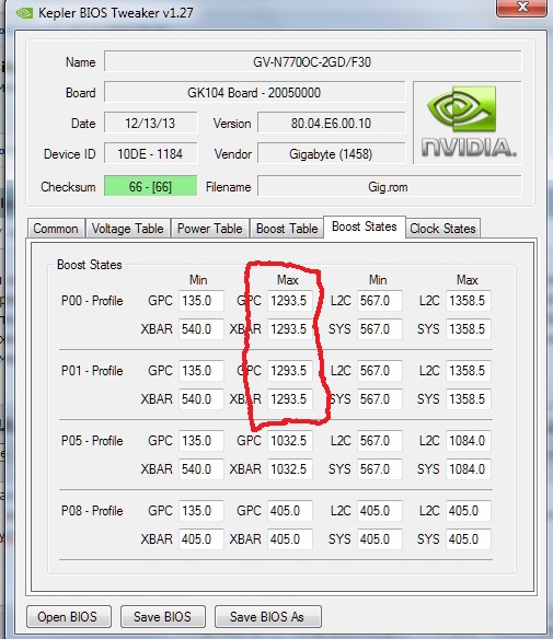 Вы изменили значение Boost table в большую сторону и карта стала работать на нужной вам частоте??? А порядок цифр не можете привести, так-то изменял там значения (fix invalid clocks) до 1450 mhz, вроде без толку. Тут на сайте есть статья Д.В., он там модифицировал биосы пары 750-х, у него карты работают на нужных частотах. Что я не так делаю непонятно. Может нужно ещё и параметры Boost States как-то изменять (троттлинги), химичил там но толку нет.