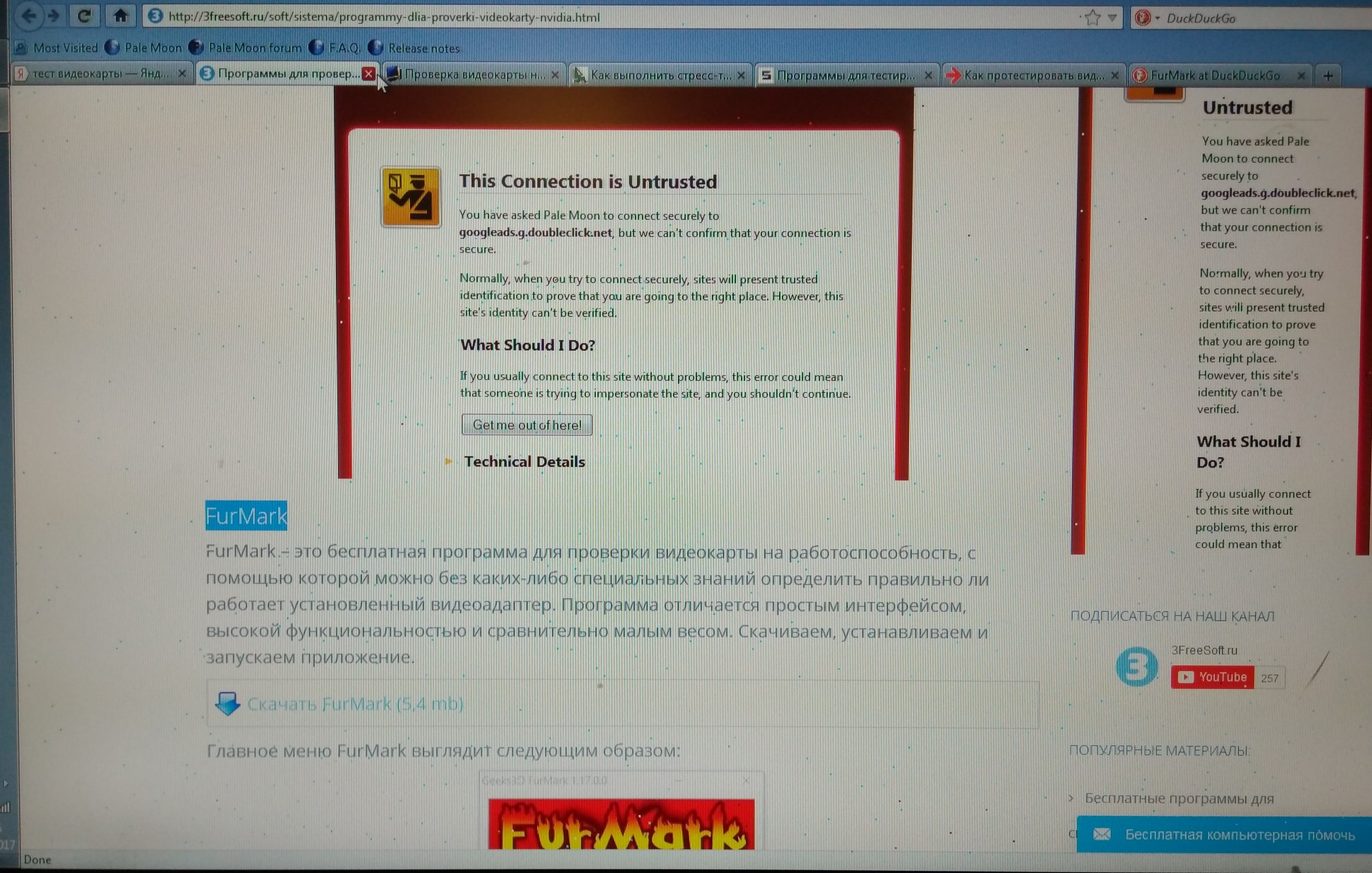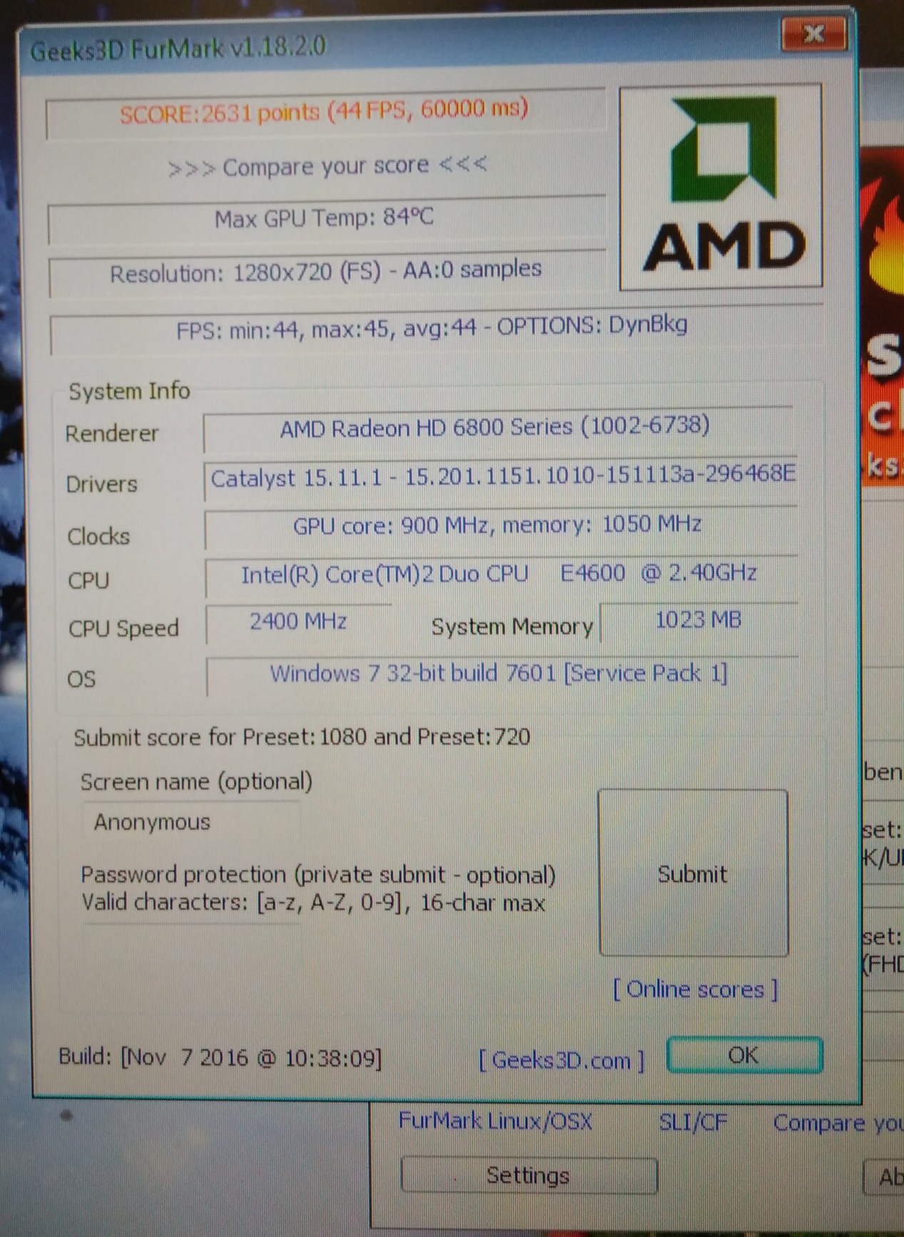 Результаты теста (после 10 мин работы в бублике, отрубился комп...