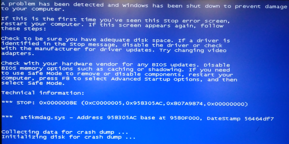 Makc1968 прошил видеокарту (013.012.000.021). Комп загрузился, я установил драйвер Каталист 15.7.1, но после перезагрузки, когда должен был загрузиться рабочий стол, выскочила вот такая синька: