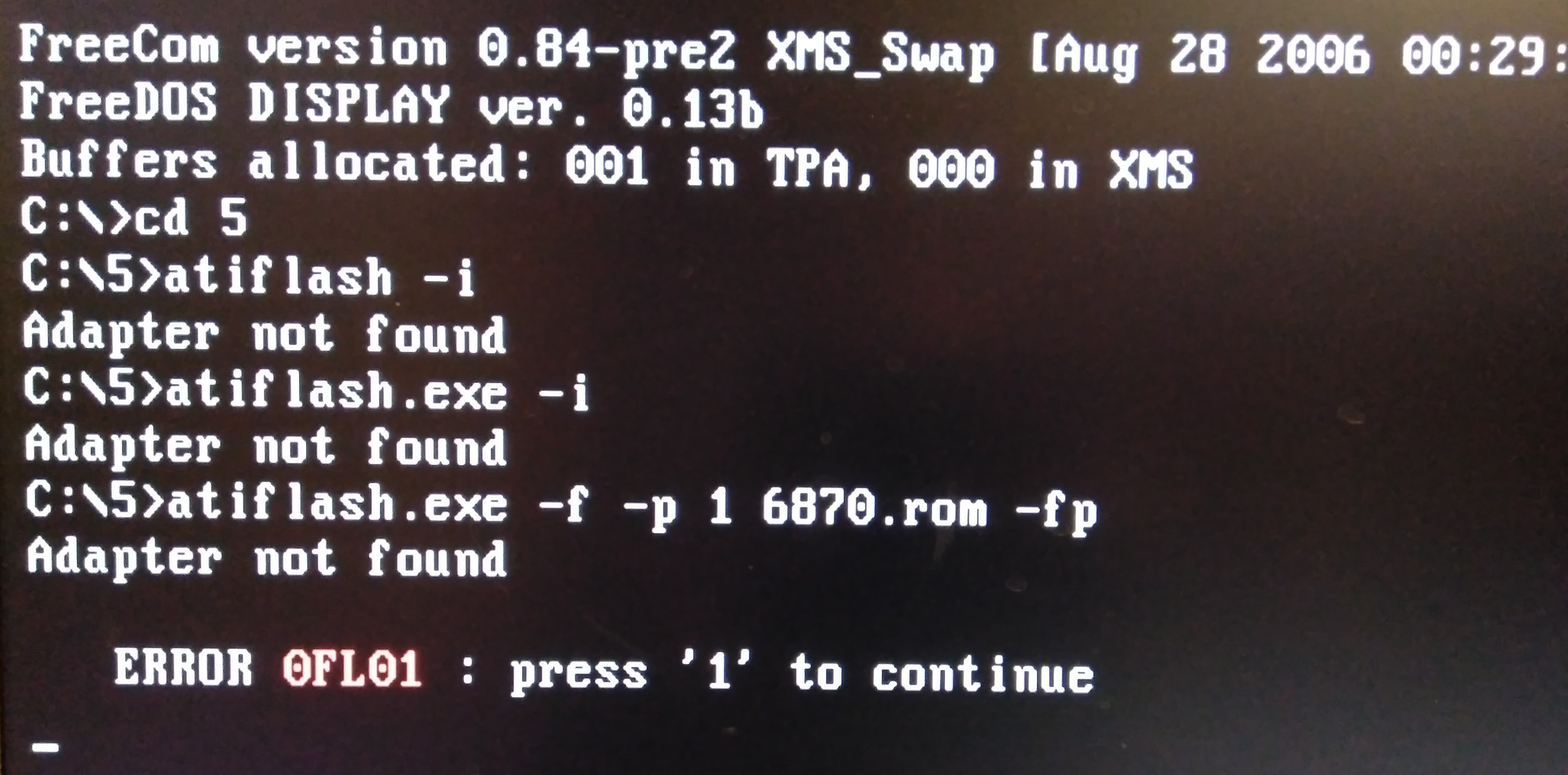 Прошил другим биосом 012.0.... и после перезагрузки монитор не загорелся, просто мигал светодиод на корпусе монитора. При повторной перезагрузки та же ситуация. У меня МП с 2-мя слотами под ВК. В 1-й слот воткнул рабочую, во второй 6870. Зашел в ATIFLASH, а он мне пишет "Adapter not found". Наверное биос неудачно прошил.