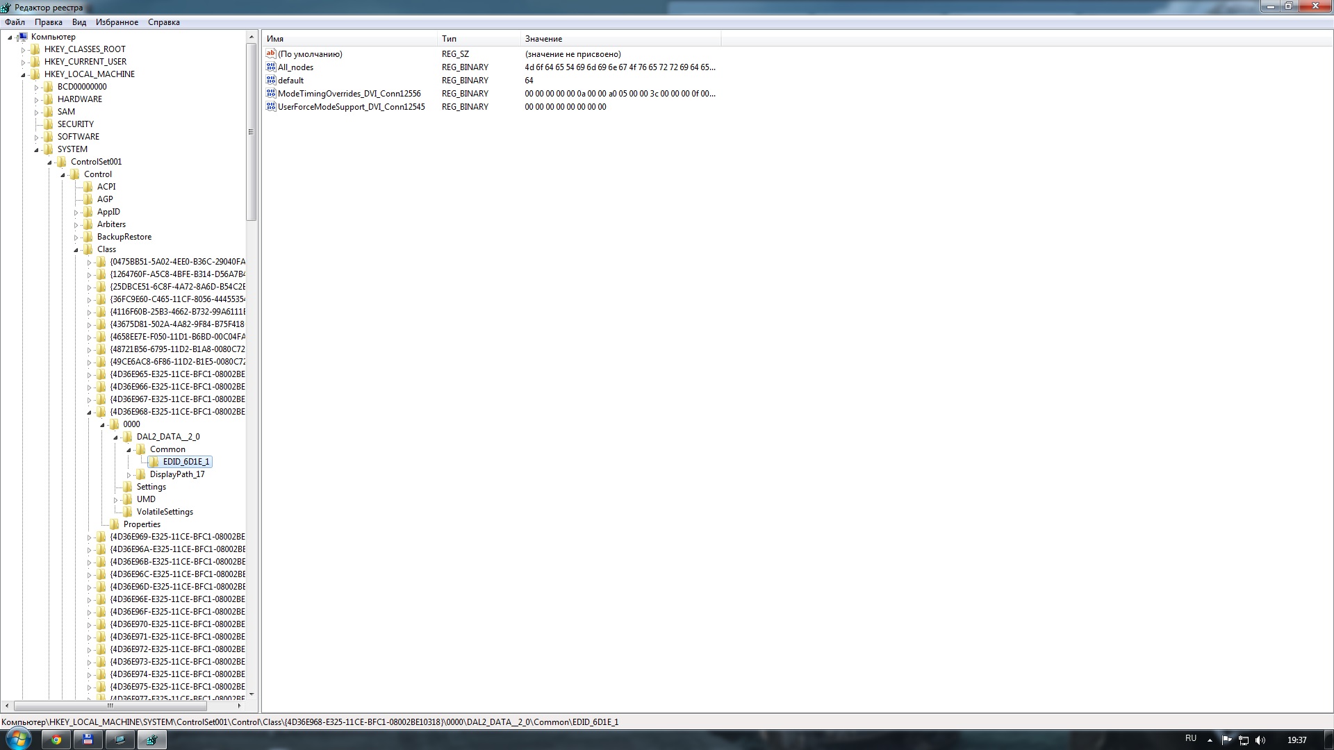 SLAVYAN1 Отлично! Значт для тех у кого hdmi достаточно редактировать всего 1 файл. В файле https://yadi.sk/d/P5phOkvlfEdoQ меняем edid на свой и шьем. Это сработает если путь к драйверу HKEY_LOCAL_MACHINE\SYSTEM\ControlSet001\Control\Class\{4D36E968-E325-11CE-BFC1-08002BE10318}\0001 Если путь отличается, то меняем путь в файле на свой +свой edid и шьем! Редактировать файл пкм-изменить.