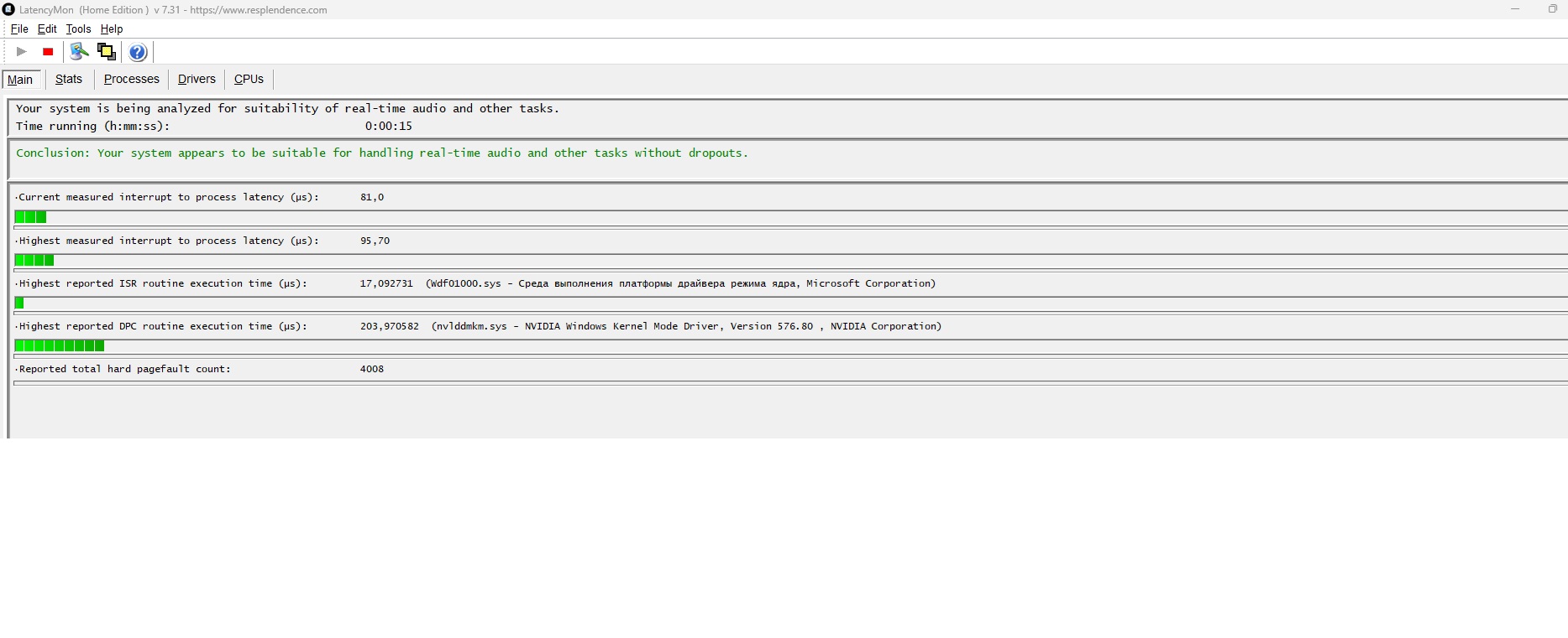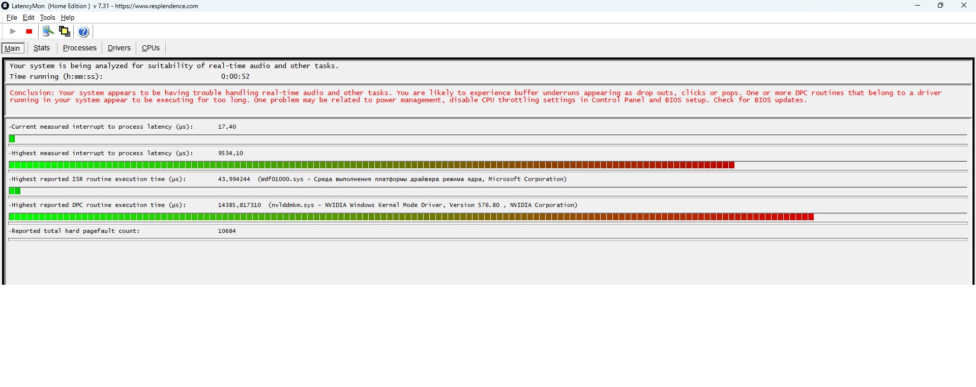 После установки 5070ti заметил микрозаикания звука при просомтре ютуба, запустил латенсимон и увидел задержку в драйвере нвидиа, уже что только не делал не получается побороть, только если драйвер отключить задержка уходит , МОжет кто знает как побороть это?