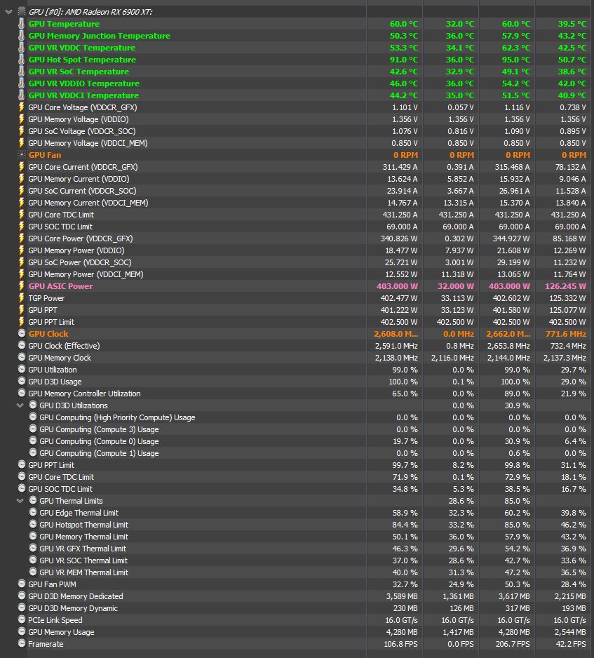 Разгон 6800хт на воде ничего не даёт, кроме более комфортных температур, так что можешь на это не ссылаться. Игры что так, что так на 2600МГц. Дальше либо под отдельные игры подбирать крупицы, либо напряжение повышать, что невозможно на БигНави. В итоге всё упирается в 1150мВ и 2650МГц +/- 50МГц для разных игр. И при этом около 300-320Вт в нагрузке.