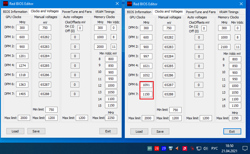 saladin85 тайминги там в обоих биос для 2000мгц стоят от 1750 ,это так было выставил в обоих биос ограничение напряжения 1.168V температура для вентиляторов изменена где 1405 мгц выставлено 69*С в другом биос 70*С да и возможно биос с 1405Мгц может глючить ,так как ограничение напряжения в 1.168 а у тебя работает сейчас до 1.219v отсюда и греется