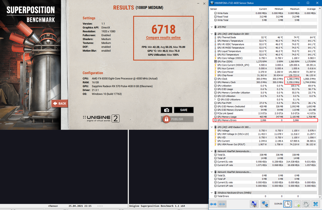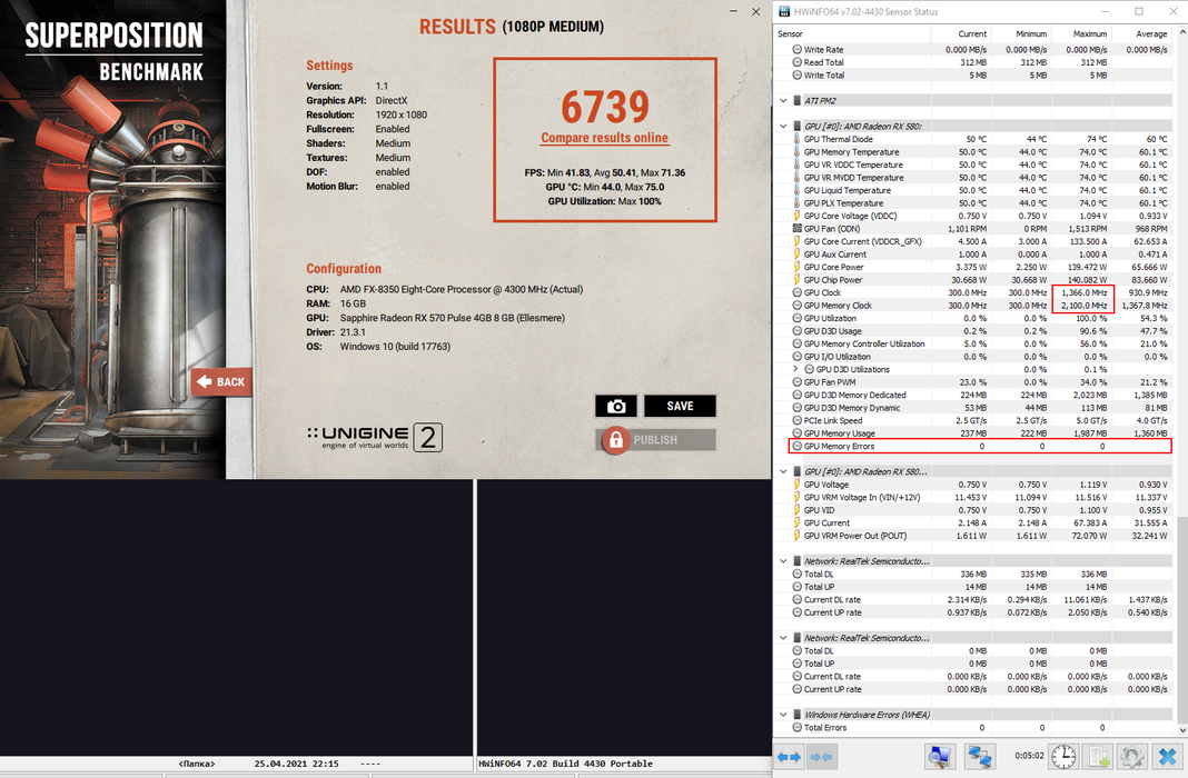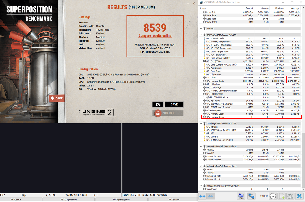 GPU RX580, Superposition врет. 950 мВ (сток) и 2150 - Тест OCCT 8.1.1 выявил 192 ошибки в HWiNFO64 на первой минуте своего теста VRAM