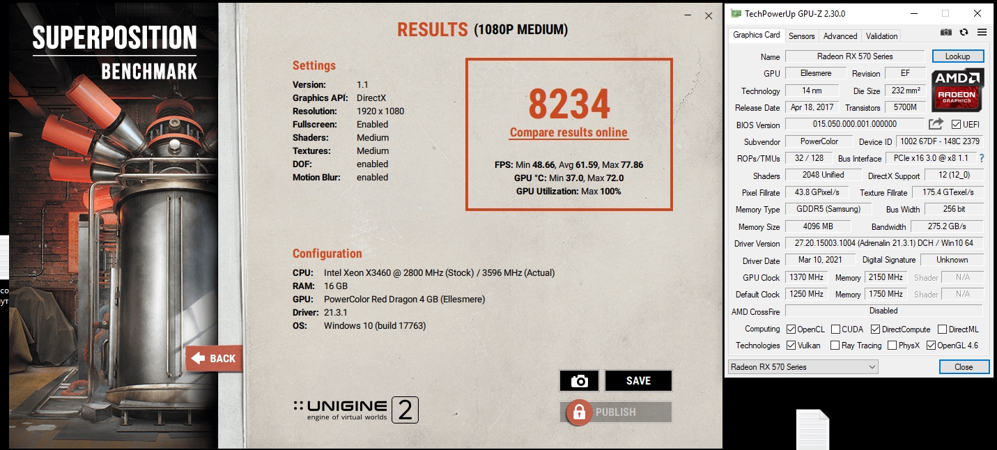 З.Ы. Только заметил, что для Medium-пресета в Superposition у вас очень низкие результаты. Вот это, для сравнения, результаты 570-ки в небольшом разгоне БЕЗ правки таймингов, т.е. на стоковых: