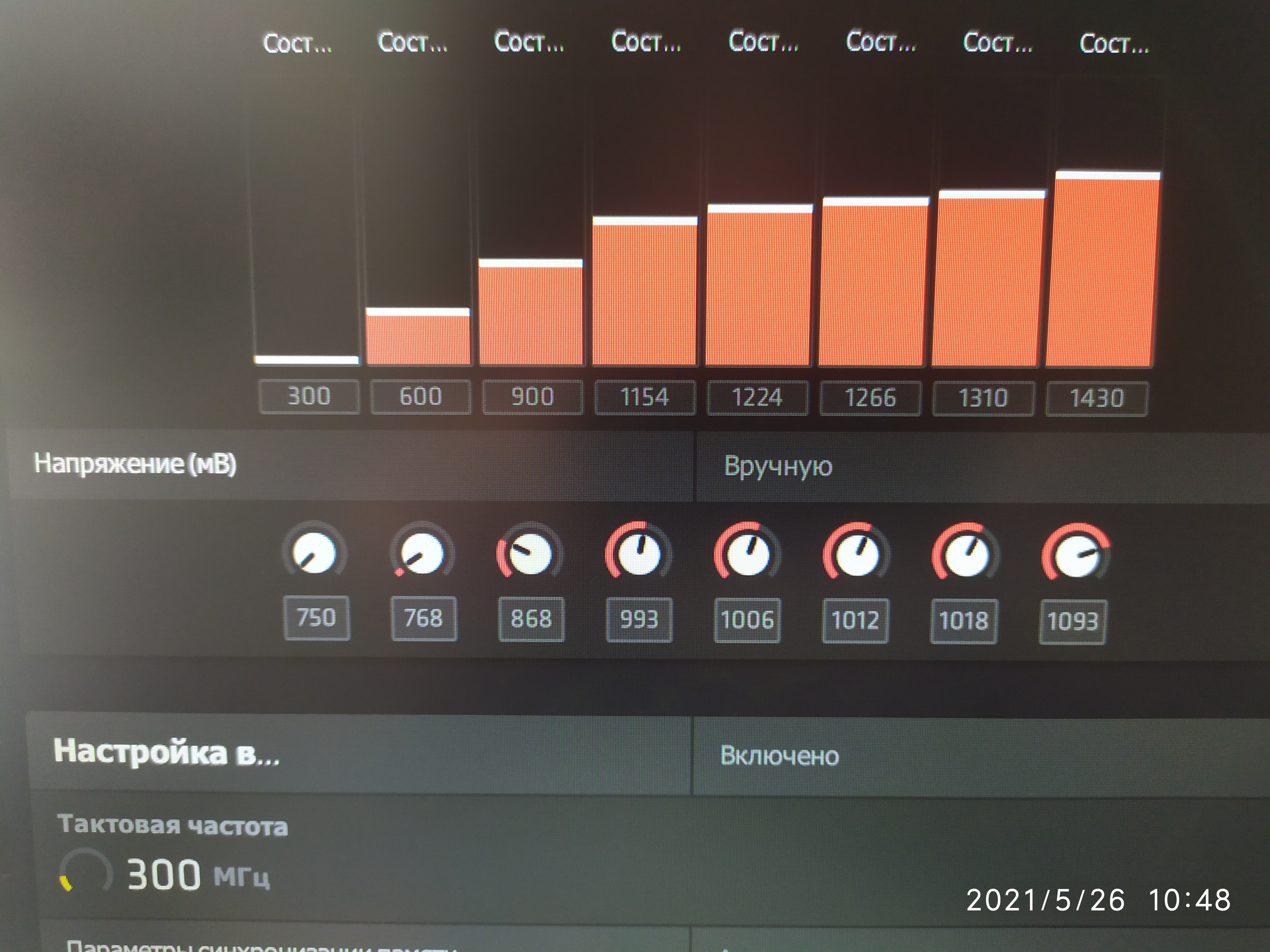 Q: По мониторингу напряжение на GPU немного отличается от установленного. A: Реально напряжение выставляется кратно 6.25 и округляется в большую сторону. То есть, если Вы выставили 1137, то реально у Вас будет 1137.5, а если выставили 1138, то уже реально будет 1143.75 мВ.