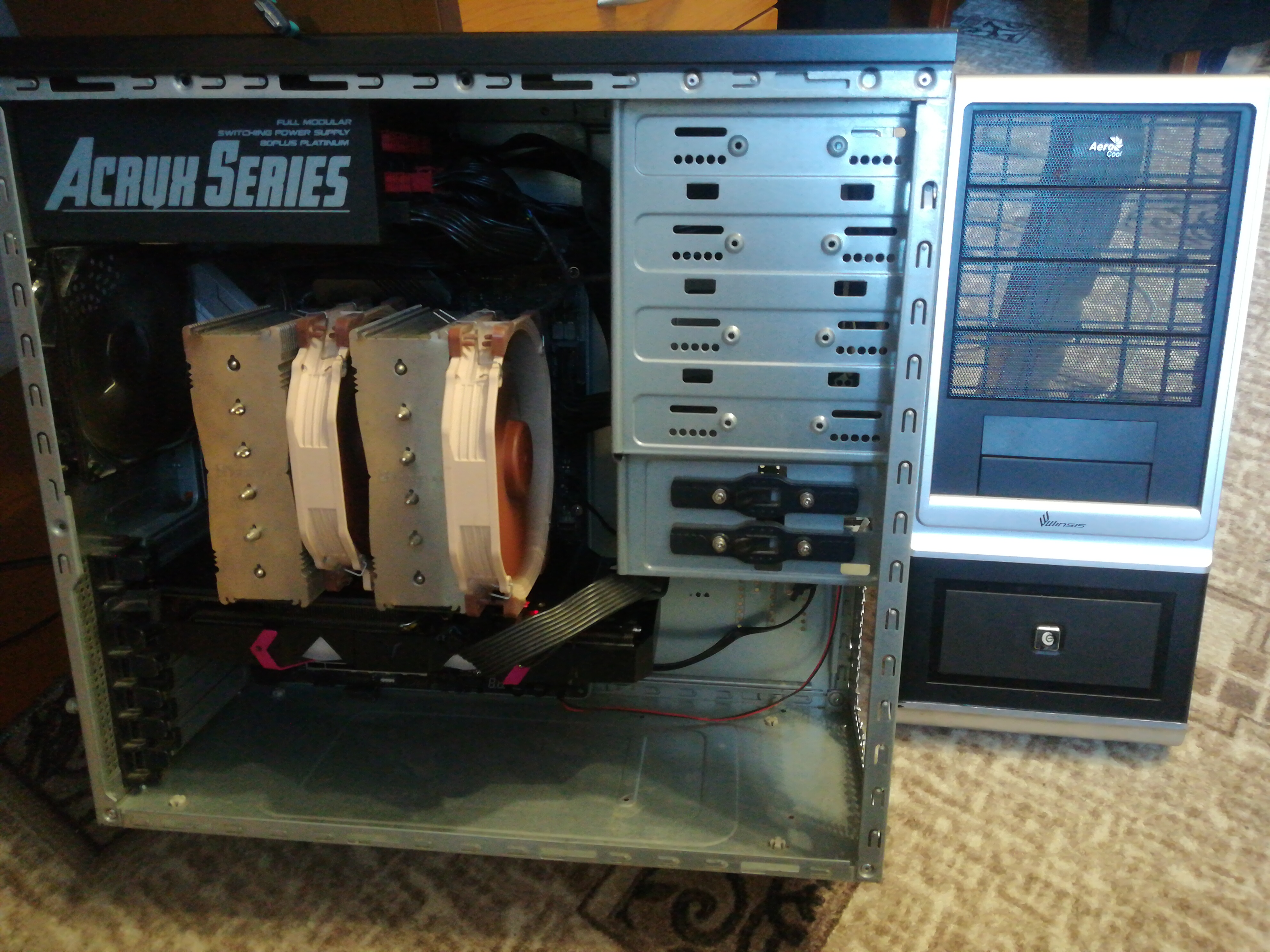 Живу в деревянном доме, так что пол скорее всего принимает участие в охлаждении корпуса, хотя в квартирах бетон/плита под полами, и они по идее холоднее. Кстати раньше была у меня идея, отводить воздух из корпуса в подполье, или на улицу через гофру и промежуточно установленные вентиляторы.