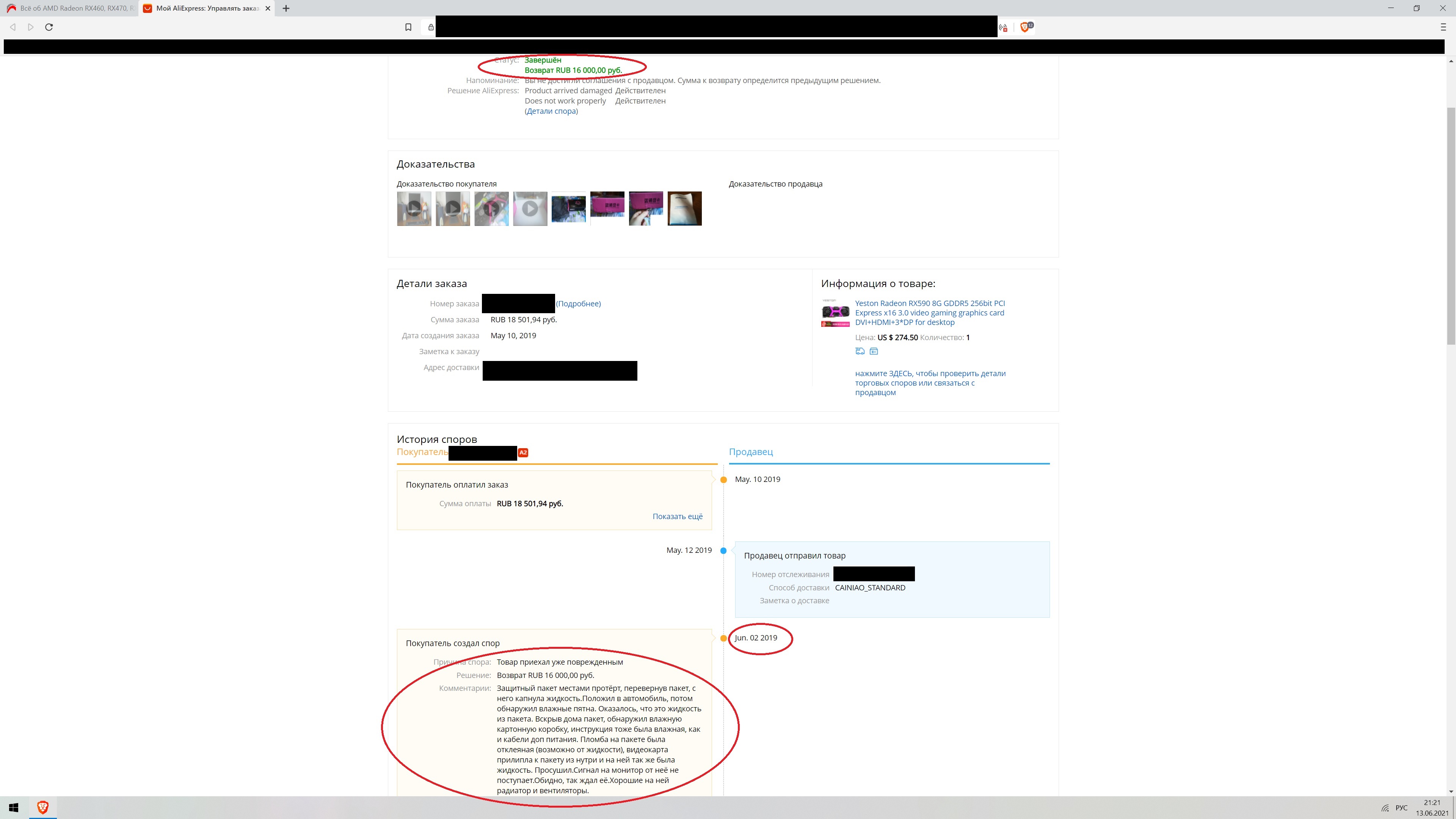 Просушил, установил в системник, не работает. Пробовал в другие системники, заменять комплектующие, толку зеро. Открыл спор. Продолжал эксперименты, протирал, сушил. Снял CO и использовал для другой видеокарты, а 590 убрал в шкаф.