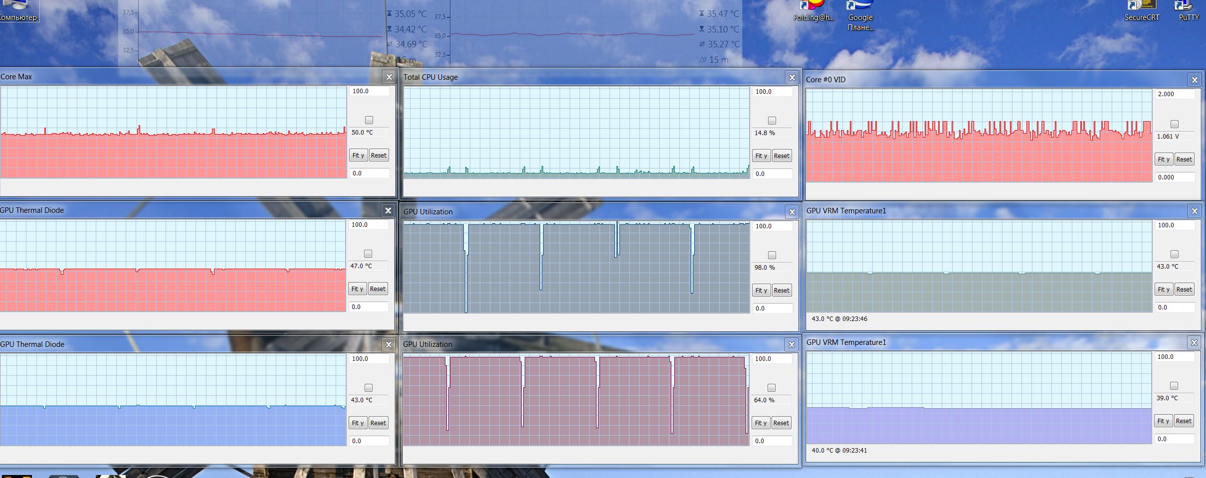 ADmA z9, 6 120. напротив карт стоит 2 вертухи, т.ч. всё ок. тем более верхняя должна больше греться, а у меня наоборот я их по отдельности ставил, абсолютно то же самое. может перемазать карту, или не стоит туда лезть? powercolor в общем-то не на гарантии, но еще не разбирался