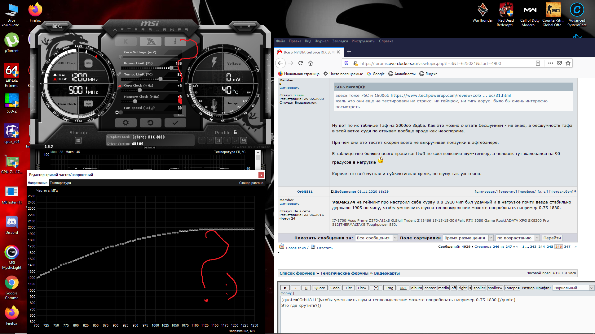 на гейминг про настроил себе курву 0.8 1910 чип был удачный и в нагрузке почти везде стабильно держало 1905 по чипу, чтобы уменьшить шум и тепловыделение можете попробовать например 0.75 1830.