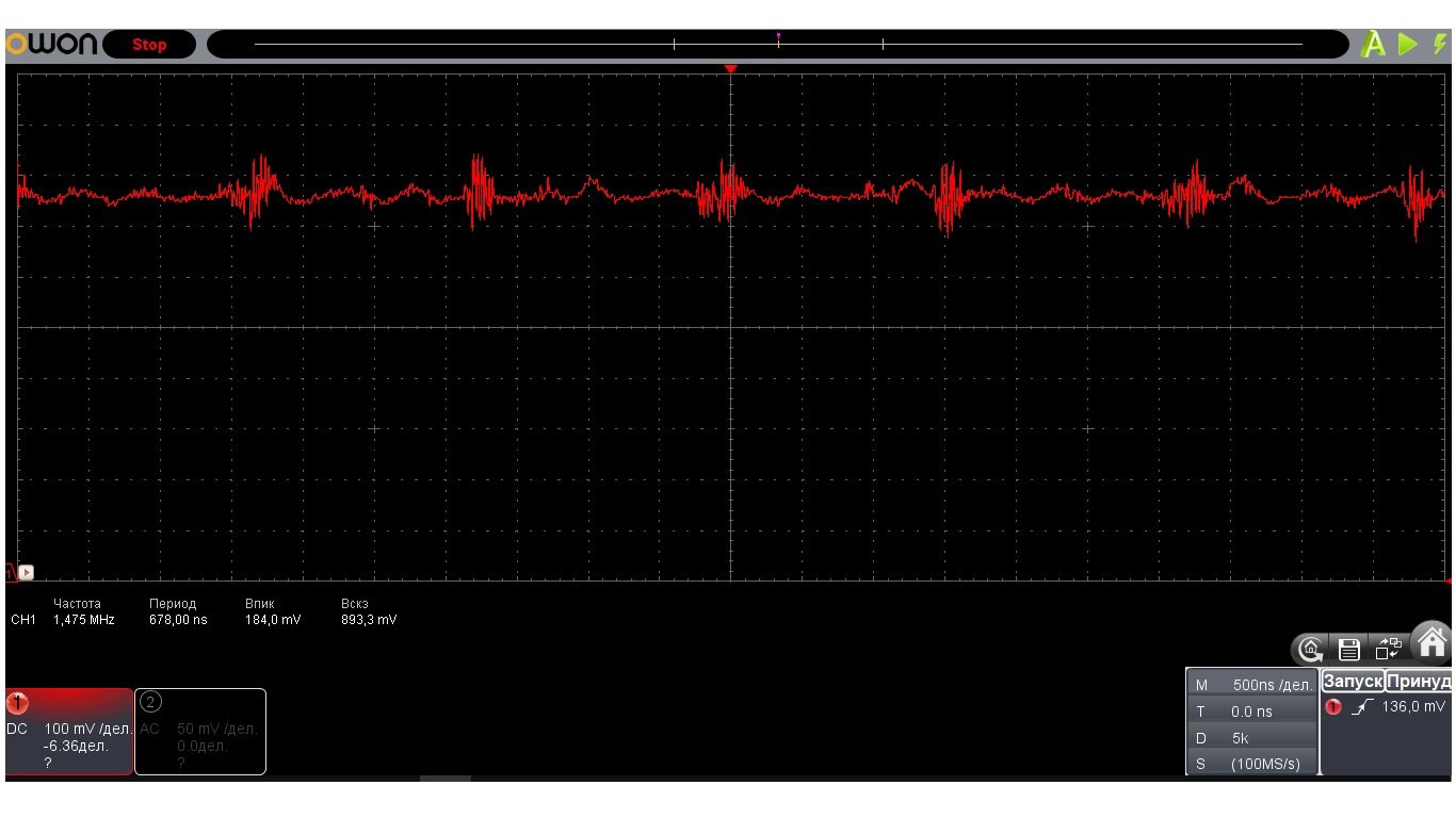 Есть график с оцелографа. 1 картинка это нормальная фаза, которая работает и с ней ни каких проблем нет, она для сравнения. 2 картинка это фаза которая горит, она питается от PCI, как видно на графике напряжение зашумлено сильно относительно исправной фазы, замер напряжения делался сразу после дросселя, то есть это напряжение до того как оно попадает в фильтр и проходит керамику.