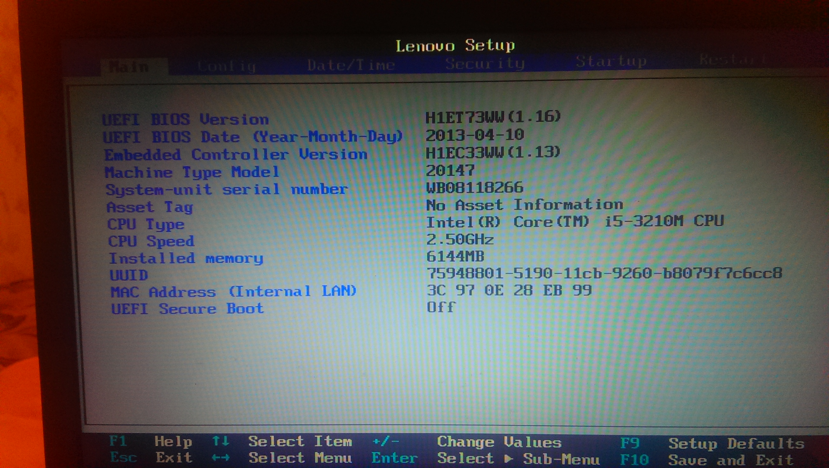 к сожалению на lenovo 20147 я нашёл только вот это: https://drive.google.com/open?id=0BxM5K ... 2h4alh0dG8 ну а само фото биоса ниже прилагаю. ещё раз объясню: я скачал свой биос, разархивировал, нашёл 2 файла $0AH1000.FL1 $0AH1000.FL2 первый файл - это как раз и есть все мои настройки биоса, из него я достал videoBios и через Kepler Tweaker изменил частоты, После этого всё завернул обратно и установил через экзешник биос. Он-то установился, но частоты не поменялись почему-то.
