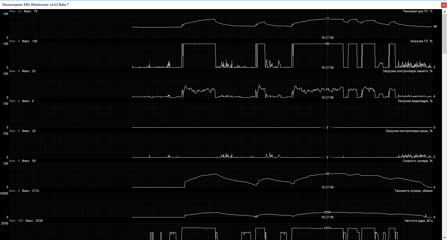 Карта сразу же выставляет напругу 1.043. Меня это раздражает) В тяжелых сценах при нагрузке близкой к 100% возвращается на значения курвы, но потом опять 1974 по ядру и напруга 1.43