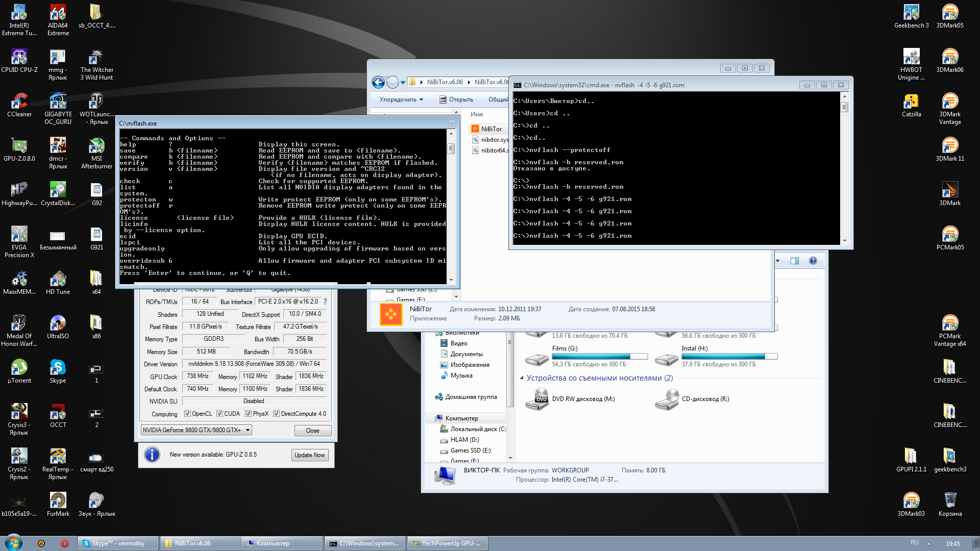 -при выполнении этих действий вам культурно напишут что мол: "nvflash не является внутренней или внешней программой исполняемой программой или пакетным файлом" По этому набираем [cd ..] без скобок чтобы выти в корень С: возможно несколько раз (у меня получилось 2 раза), затем из положения С:\ набираем выше описанные команды по порядку 1)nvflash --protectoff (отключаем защиту) 2)nvflash -b reserved.rom (бэкап родного биоса) 3)nvflash -4 -5 -6 имя_биос.rom (старт прошивки)