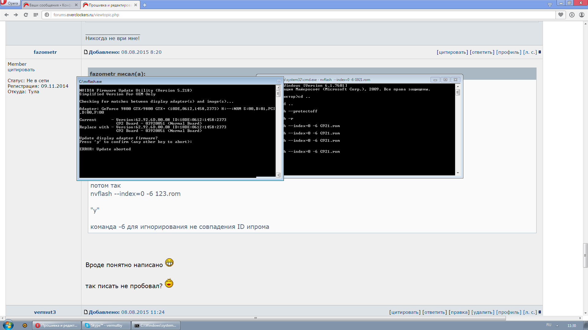 Теперь снова обращаемся к nvflash и после 3й команды в консоли будет спрошено о ващей уверенности в собственных действиях, предупреждение о моргании экрана и собственно надписи о том что пляски с бубном завершились
