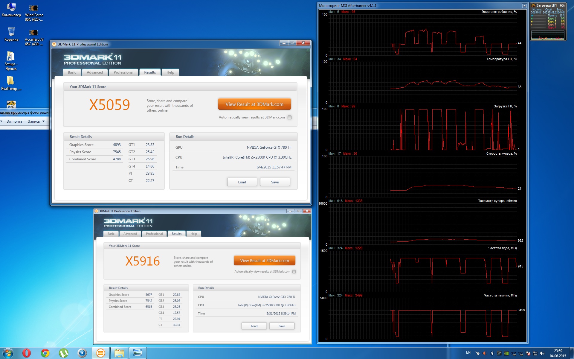 поставил я на свою 780ti от гигабайта (ГГц эдишн) Accellero4 - при одинаковом шуме на 20гр меньше. я обрадовался, но включил 3дмарк - а там на 10% меньше стало!!1 не могу понять почему. Матплата ASUS P8P67 такая http://www.asus.com/ru/Motherboards/P8P67_REV_31/ там 2*16х разъемы оба (я в в нижний поставил, тк в верхний не лезет) что это может быть? вот скрин с афэбернера. частоты все норм - на 1228 - как и раньше, загрузка видяхи 99%, энергопотребление там 90-95%, но вот почемуто было 6000 очков, а стало 5000. и там на картинке прежние результаты проц там и там встоке. при том что с новым кулером видяха сама в бублике в бусте на 80мгц больше держит частоту