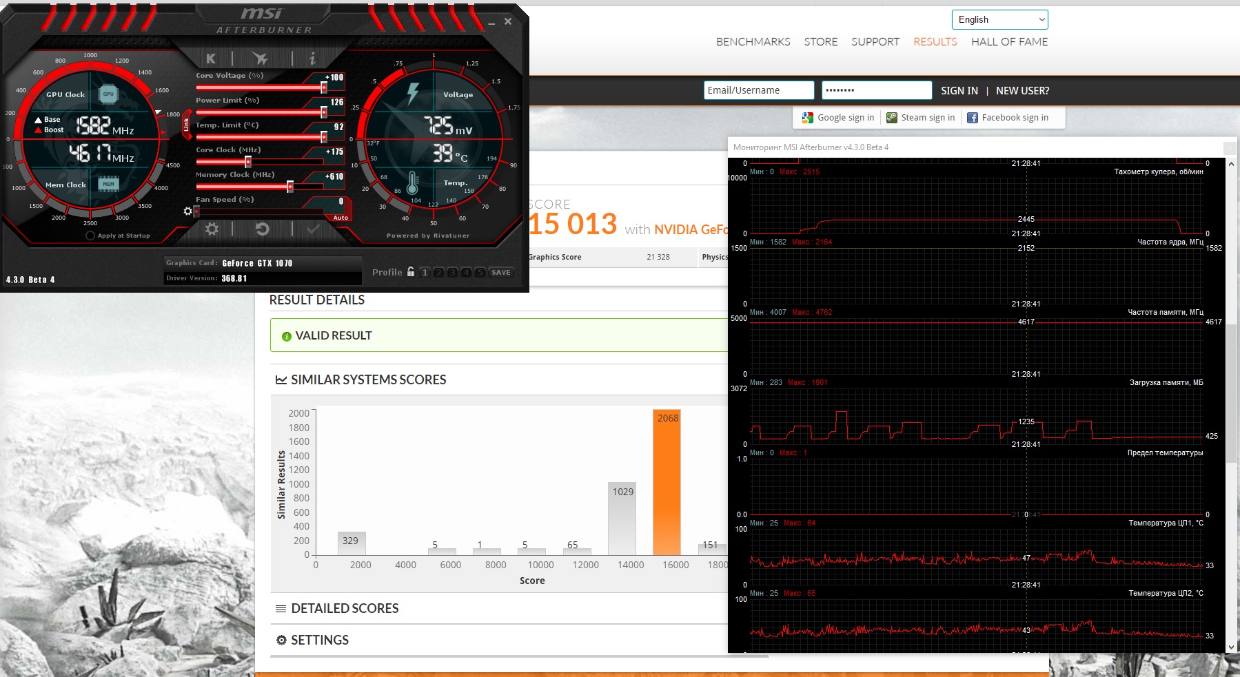 ради интереса поставил кулеры на 100 процентов и карточка взяла 2101 мгц только смысла нет кулеры при 2050 бесшумные (30 процентов) а 2101 это самолет.