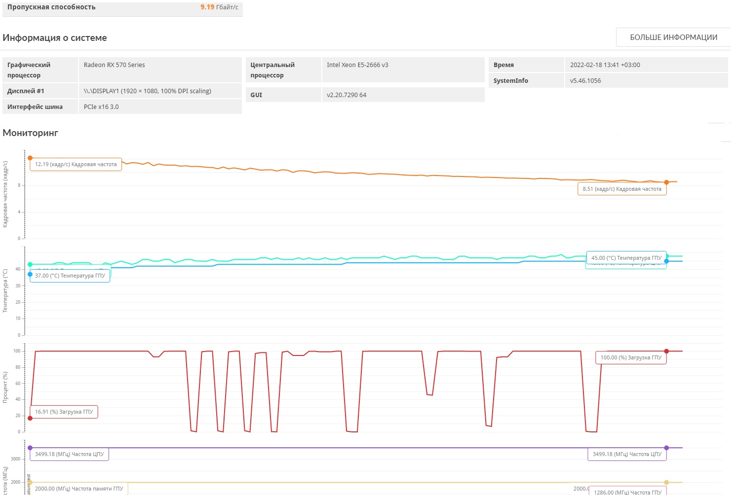 Столкнулся с тем что если начинать крутить настройки драйвера Адреналина в разделе "Видеокарта", то как бы наблюдается падение прокачки шины PCI в тесте PCI Express feature test из пакета 3D Mark. В частности, установлено, что если включить "Anti-Lag" и(или) сменить "Общую графику" с профиля "Стандартные" происходит падение скорости шины. Но вместе с тем раздел "Производительность" с ручным понижением напряжения и разгоном памяти и выставлением "Уровня синхронизации" (зашито несколько таймингов на заводском варианте Биоса) влияет только в плюс скорости шины, несмотря на некоторое число ошибок по памяти. Результаты прогонов на RX 570: Условно выставлена стоковая память с частотой 1750 и андервольтинг. Пропускная способность: - 13,59 Гб/с