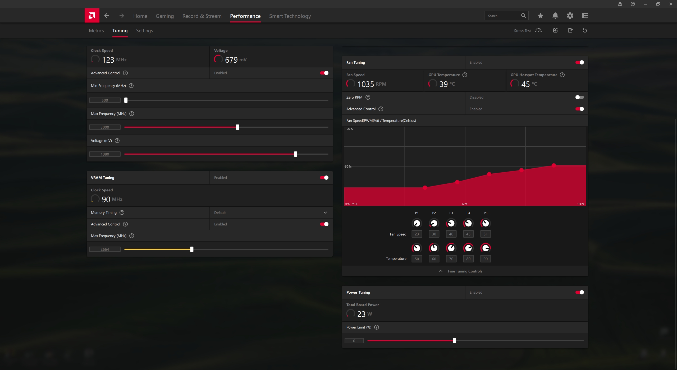 Максимальный уровень Power Limit можно увеличить лишь на +15% независимо от того, настроена видеокарта по умолчанию на 355 Вт или 420 Вт. Модификация VBIOS пока невозможна, поэтому изменить таблицы Power Play нельзя. AMD слишком сильно ограничила возможности для пользователей, как «вверх», так и «вниз».