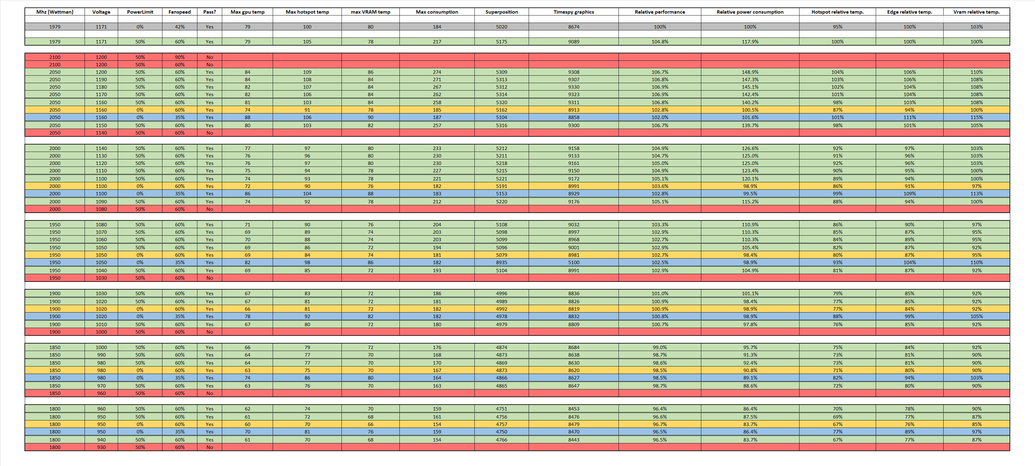 Я у себя оставил GPU Mhz / Voltage - 1950 / 1112 путём научного тыка) Всё устраивает. И, конечно, многое по температурам зависит от охлаждения корпуса и температуры в комнате, если говорить о воздушном охлаждении.