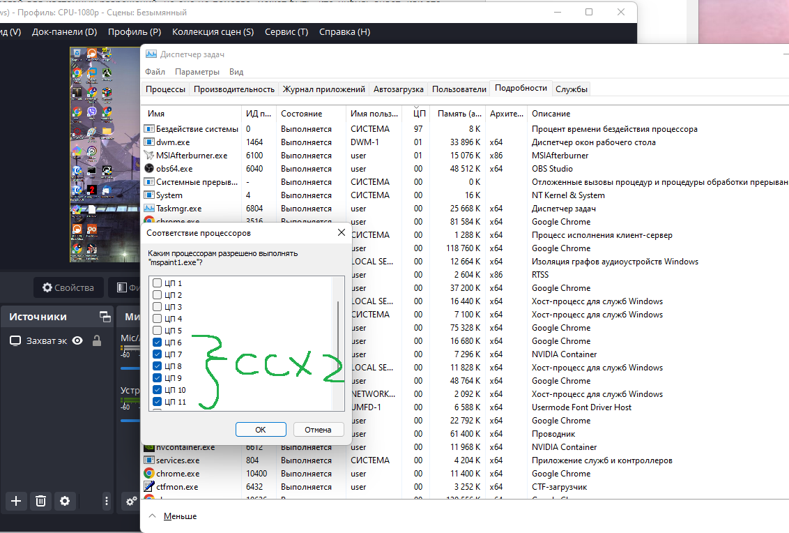 moodak Настройки в OBS смотрите, качество не вытянет, ставьте баланс или скорость. А вообще, если игра простенькая (=малопоточная), а битрейт низкий, то лучше процом кодировать, у АМД энкодер дерьмовый, привяжите игру к CCD0, a OBS на CCD1: первые 6-потоков OBS, вторые 6-потоков игра, потери производительности в игре практически не будет.