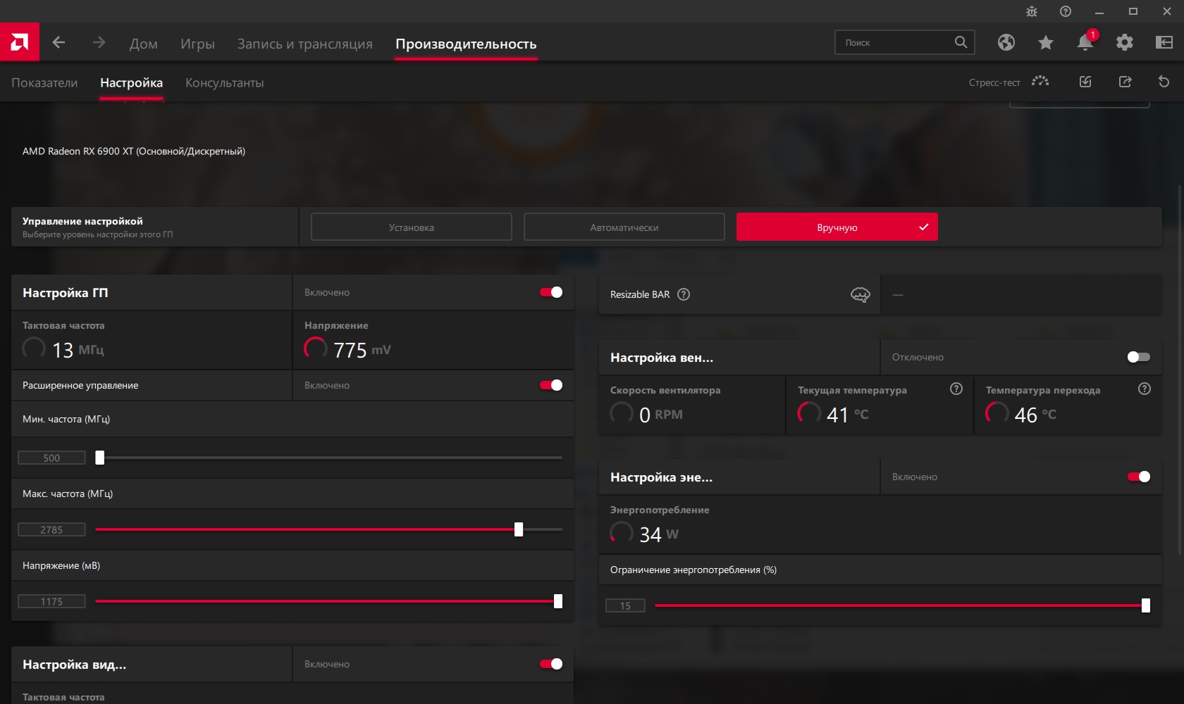 - Установить последнюю версию Windows 10 1903/1909. Как это сделать можно прочитать здесь https://www.microsoft.com/ru-ru/softwar ... /windows10. - Осуществить подключение питания карты рекомендуется двумя отдельными кабелями во избежание возможных проблем с блоком питания, с самими кабелями и пиковым потреблением. - Использовать блок питания рекомендуемой производителем карты мощности. - Необходимо учитывать, что некоторые запущенные программы по мониторингу (afterburner, gpu-z и подобные) могут вызывать различного рода проблемы в работе карты и поведения карты в игре (статтеры, снижение fps, сбой в работе вентиляторов). В некоторых случаях были проблемы c оверлеем Adrenaline. (данная рекомендация может считаться устаревшей, в случае использования последних версий драйверов и обновлений Windows). - Разгон оперативной памяти может вызывать статтеры, вылеты или черные/синие экраны, если он был произведен без должного тестирования памяти на стабильность. Поэтому перед проверкой карты и ее разгонного потенциала рекомендуется сбросить разгон процессора и памяти. - Порядок установки новой карты: установить новую ОС -> установить драйвера чипсета -> установить прочие драйвера -> установить драйвер видеокарты. - Рекомендуется переустанавливать драйвер после переключения БИОСа на видеокарте, чтобы он (драйвер) корректно интерпретировал новые настройки (эта рекомендация Sapphire, написанная на бумажке, которая вложена в коробку с видеокартой). - Рекомендуется заполнить табличку OC potential of RX 6000 series - Проверить карту стресс тестами и играми (в том числе при при разгоне) в стоке со сбросом любого разгона (в т.ч. памяти и процессора): 3DMark Time Spy, тест на стабильность, 20 прогонов - Одна из рекомендаций по отлову черных экранов и проверки системы на стабильность: LinX (задачи 40000) + Kombustor (1080р), вместе включаем и смотрим приблизительно полтора часа. Предварительно выкрутить вентиляторы карты и системы на максимум во избежание перегрева.